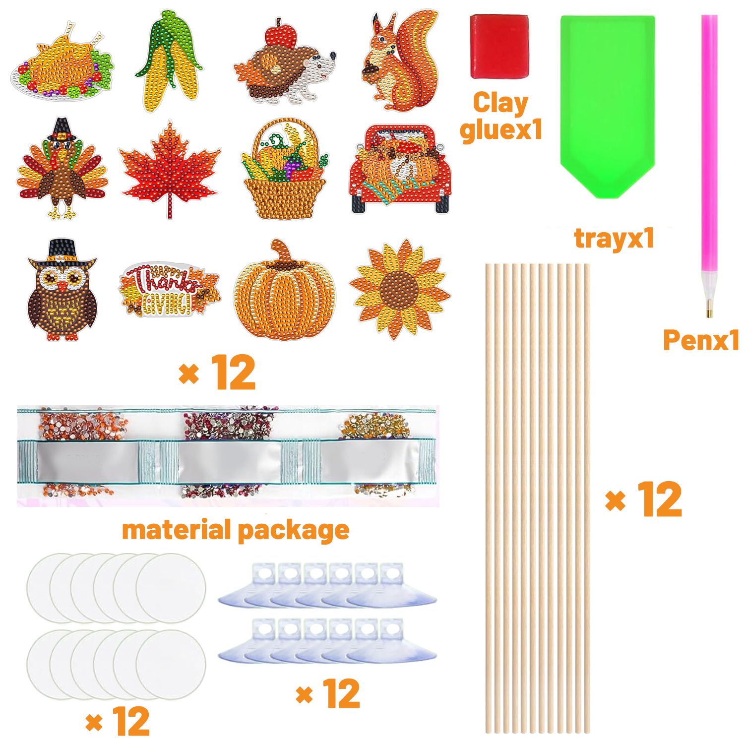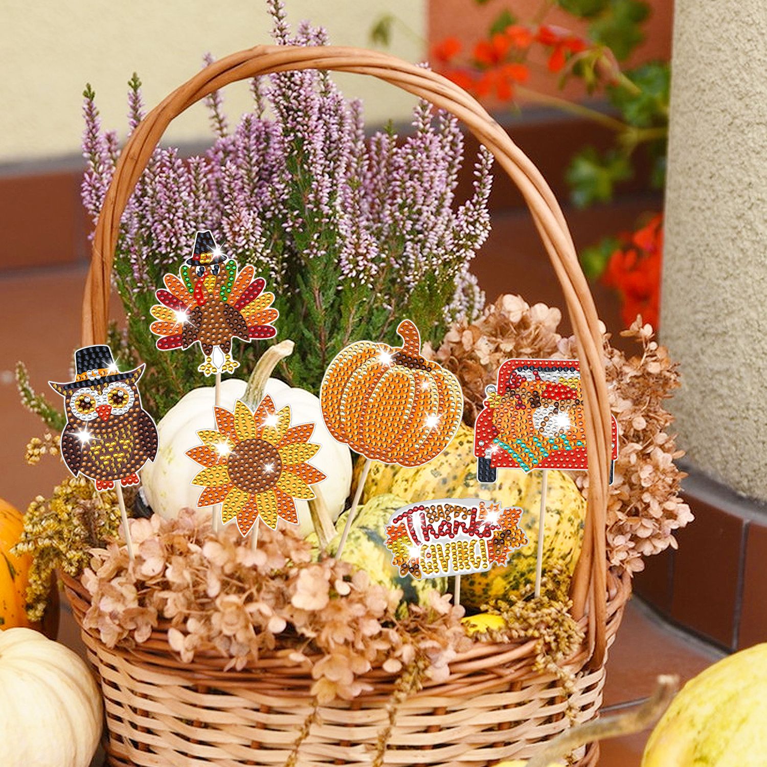 The diamond art kits for Thanksgiving feature many fall elements, such as pumpkin, turkey, maple leaf, corn , hedgehog, sunflower, etc. Diamond art Thanksgiving keychains with various styles are full of vitality, fun, shine, and cuteness, creating a rich fall harvest atmosphere and filling with a festive atmosphere