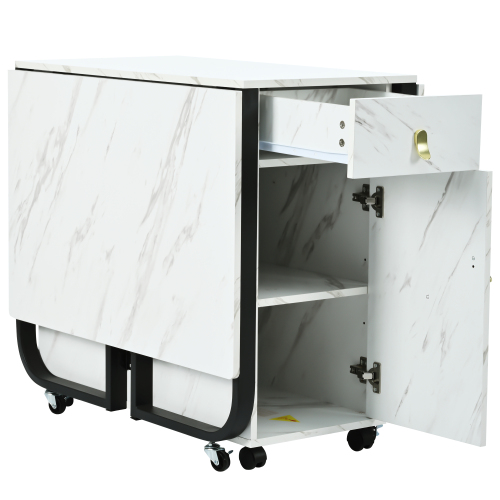 Folding Dining Table 1 Piece With Cupboard And 2 Drawers, Folding Kitchen Utility Table, Space-saving Dining Table With 4 Supporting Legs On Gliders White Black