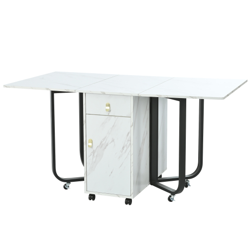Product Name:Folding dining table (1 piece) with cupboard and 2 drawers, folding kitchen utility table, space-saving dining table with 4 supporting legs on gliders (white/black)