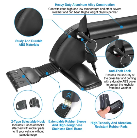 ** CONSIDERATE ANTI-THEFT LOCK DESIGN*:Each across bar comes with an anti-theft lock to ensure the security of the cross bar and coming with a durable ABS cover to protect the keyhole from bad weather.