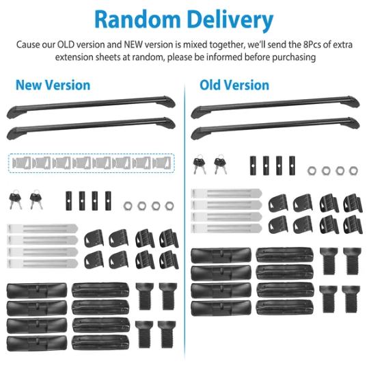 We provide you with 8Pcs of extra extension sheets for stainless steel braces to fit your car well. If the crossbar is not wide enough to fit your car,you can use the sheet to extend the length(4cm/1.57in Extension length for each sheet). Warning:Cause our OLD version and NEW version is mixed together,we’ll send the 8Pcs of extra extension sheets at random,please be informed before purchasing.