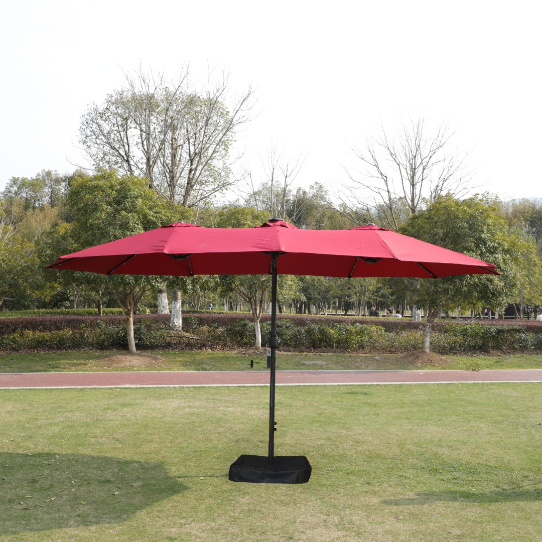 Product Name:15x9ft Large Double-Sided Rectangular Outdoor Twin Patio Market Umbrella with light and base- taupe