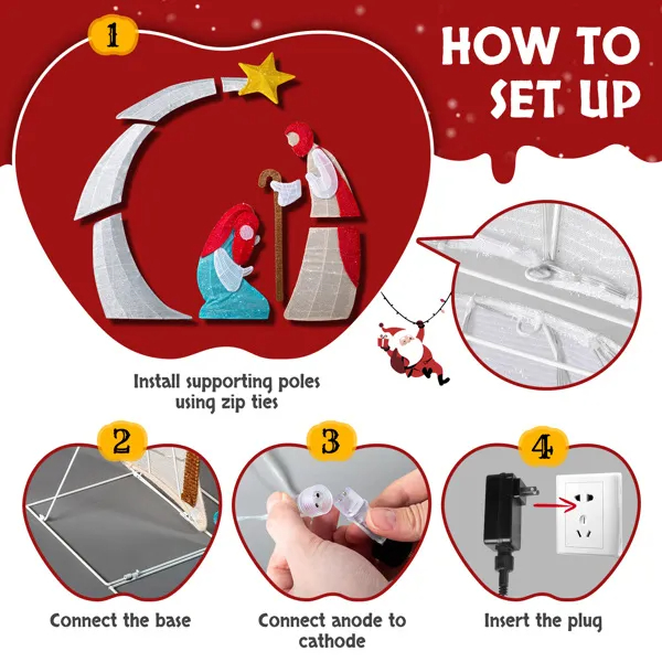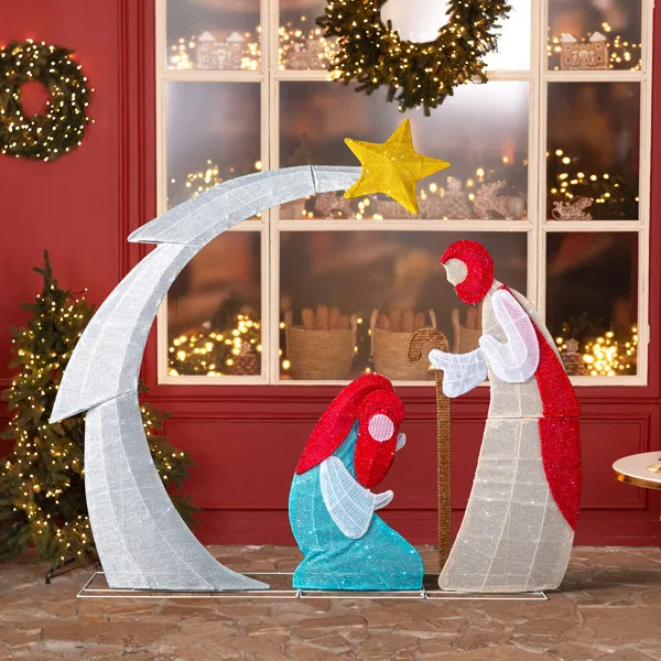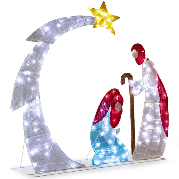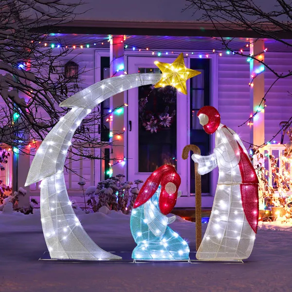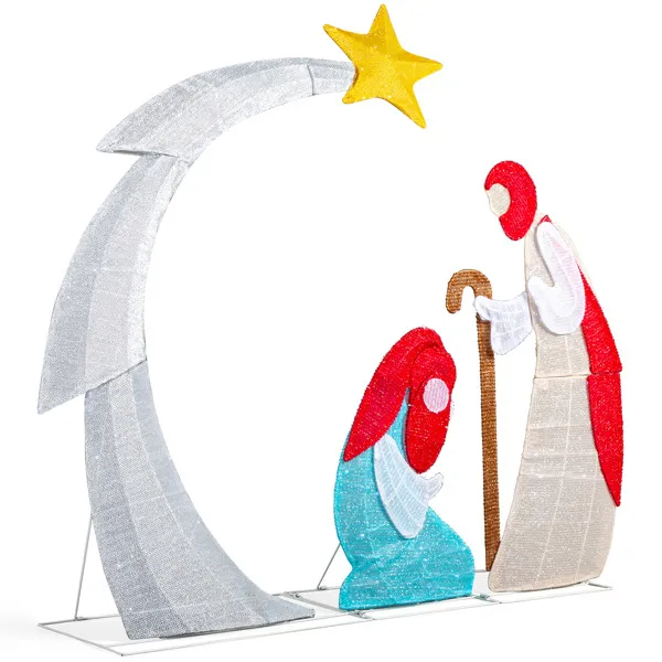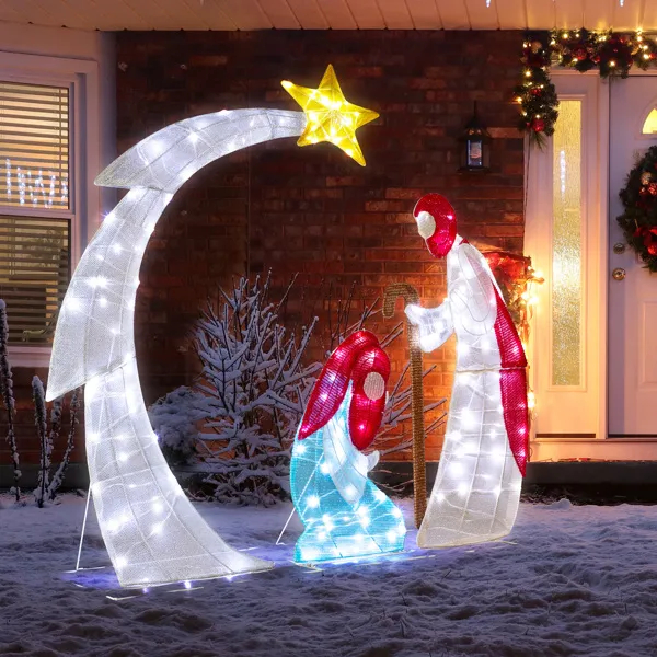 Create a heartwarming display this holiday season with our stunning lighted outdoor nativity scene. Perfect for bringing a touch of festive spirit to your yard or garden, this beautiful decoration captures the true essence of Christmas. With its durable and weather-resistant design, it's built to withstand the elements while providing a warm and welcoming atmosphere. Easy to assemble and store, this nativity scene is ideal for both indoor and outdoor spaces, making it a timeless addition to your holiday décor year after year.
