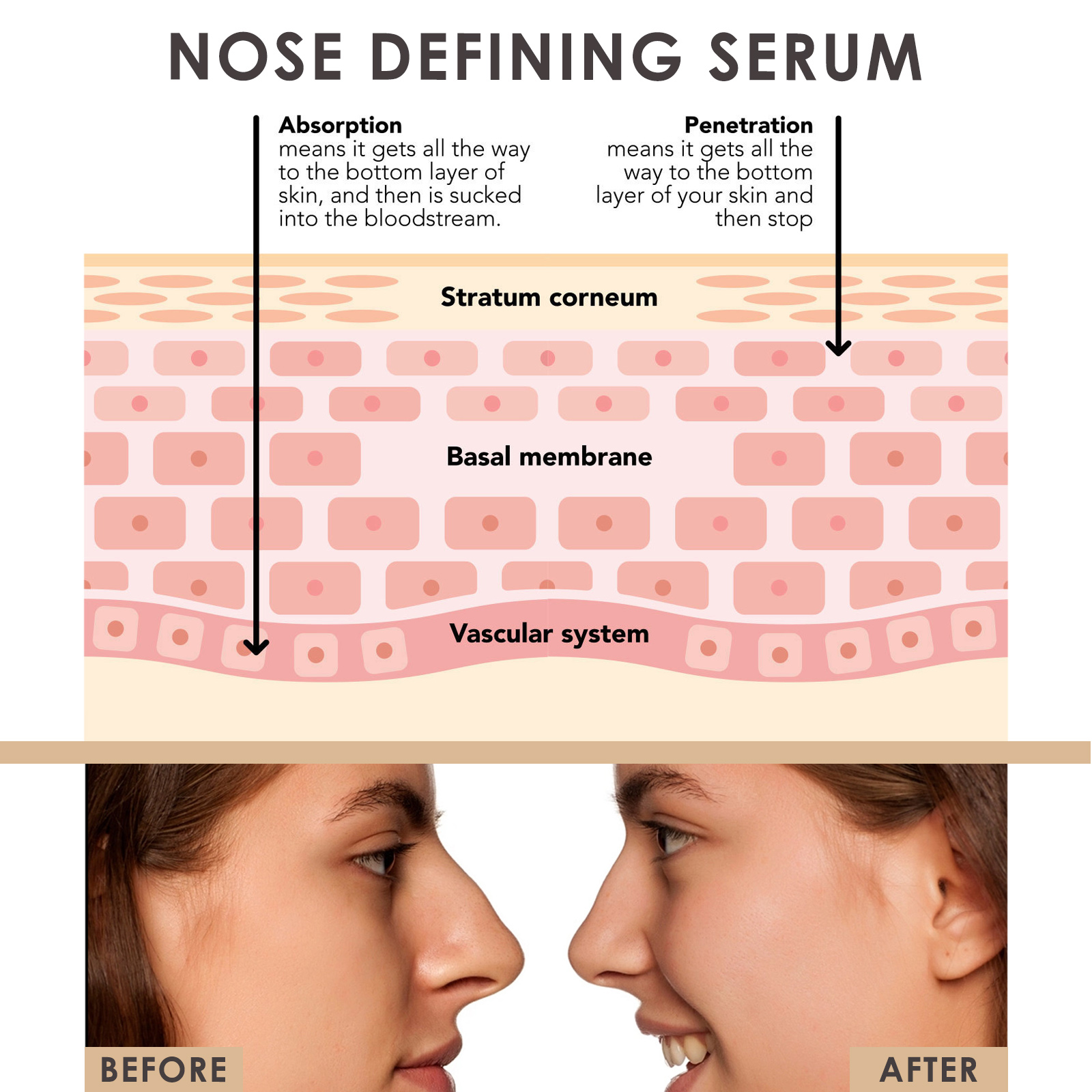 Our nose styling serum contains hydrolyzed collagen, acetyl hexapeptide-8, and Jojoba oil. It reduces the appearance of lumps, soothes the skin, reduces lumps, helps to increase the clarity and support of the bridge of the nose, and makes the nose look smoother. Enhance the overall symmetry and harmony of the face without the need for surgery or injections, making one more confident. Its application method is very simple: clean and dry the skin of the nose, apply an appropriate amount of serum evenly on both sides of the bridge of the nose, massage gently with your fingertips until absorbed, and finally rinse with warm water. Improve the shape and outline of the bridge of the nose, enhance the clarity and symmetry on both sides of the nose, and make the appearance more refined.