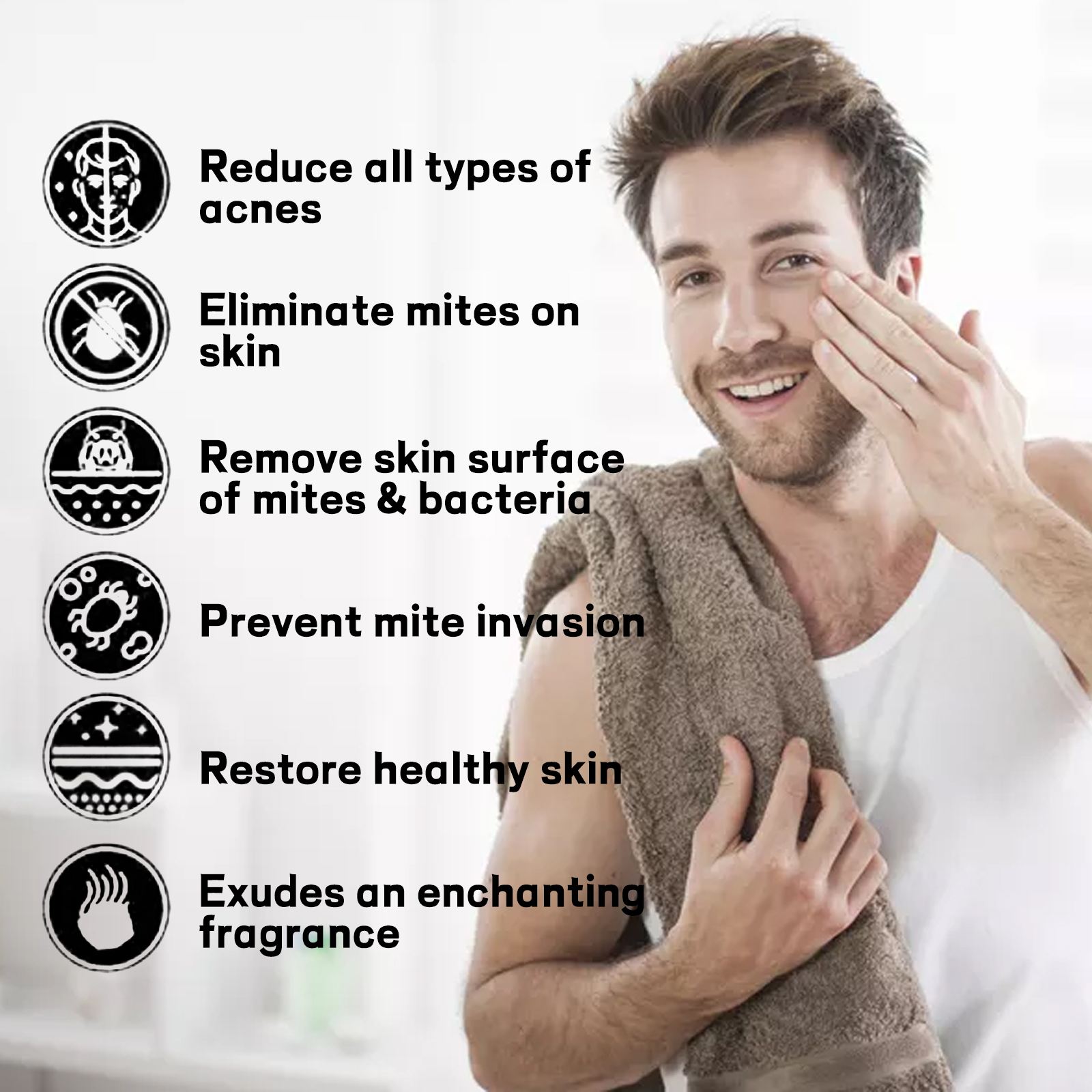 Our Aurora Purifying Mite-Removing Soap contains Glycerin, Melaleuca Alternifolia (Teatree)Leaf Oil, Cedrus Atlantica Bark Extract. It can remove mites and bacteria from the skin surface, prevent mite invasion, restore healthy skin, and exude a charming fragrance. Its application method is very simple: wet the soap with warm water, knead into the palm to create a foam, gently massage the foam into the face, hands or body skin, and finally rinse off with water. It can eliminate mites on the skin and make the body more refreshing.