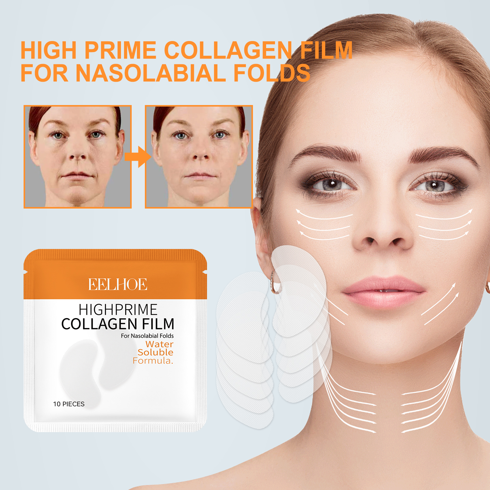 EELHOE High Prime Collagen Film For Nasolabial Folds, Lighten Fine Lines By Moisturizing Lines And Firming Skin
