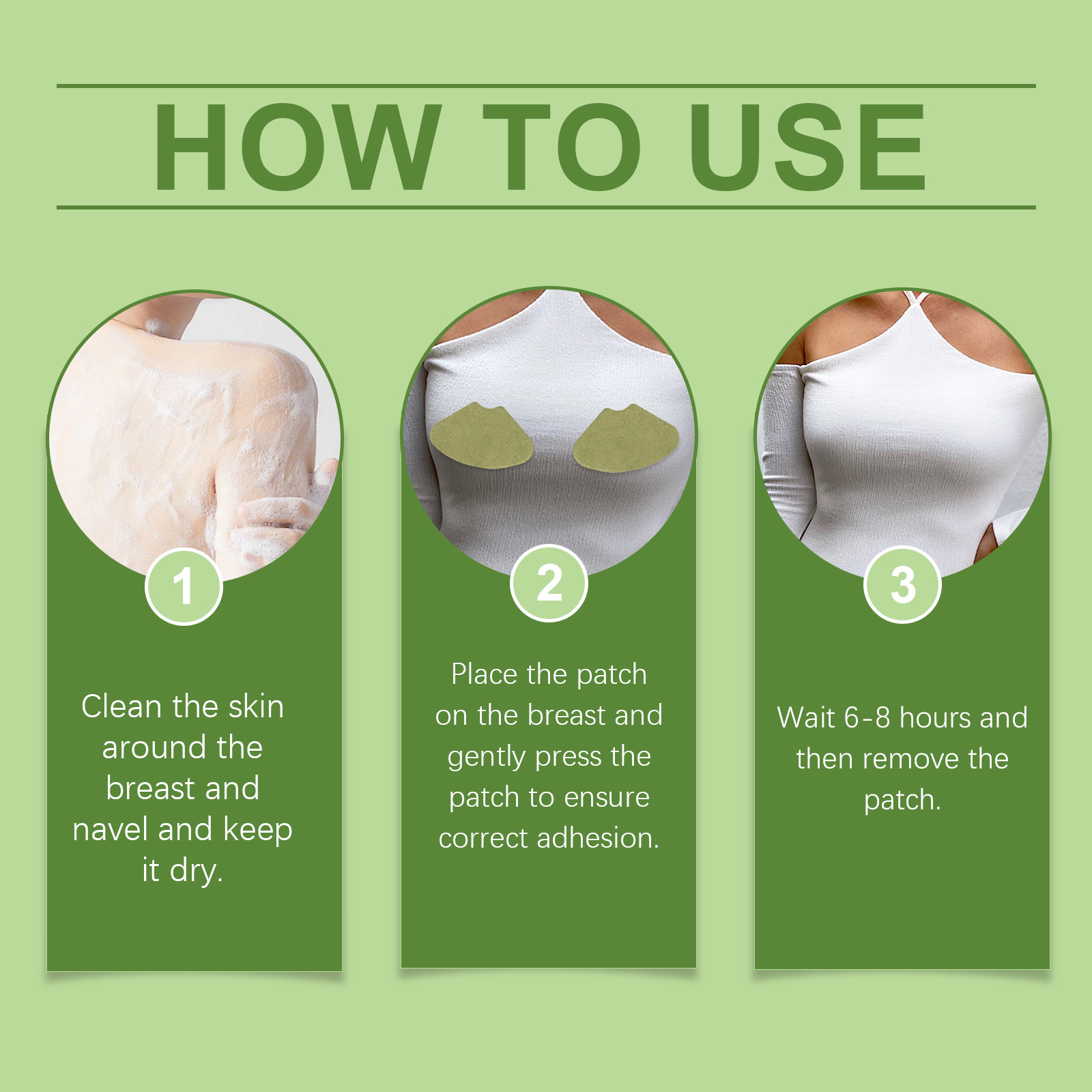 Our herbal lifting and tightening chest patch contains mugwort extract, Prunella extract, and Poria extract. It can lift and tighten the chest and improve sagging and asymmetrical breasts. It improves blood flow and helps tighten the chest. Its application is simple: 1. Wash the skin around your chest and belly button and keep it dry. 2. Place the patch on the breast and gently press the patch to ensure proper adherence. 3. Wait 6-8 hours and then remove the patch. The herbal Lift Firming Chest Patch will smooth and repair the skin, making your skin smoother. Improves skin shine, makes chest skin healthier and brighter.