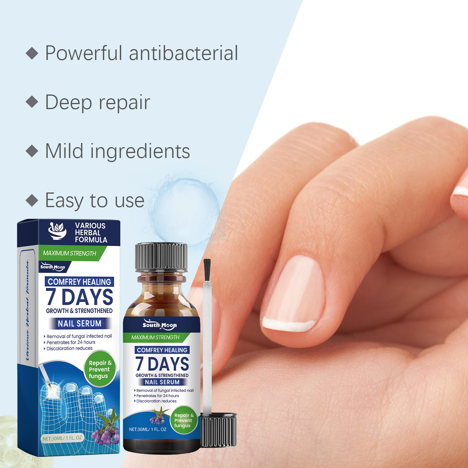 Our nail repair serum contains glycerin, carbomer. It can quickly kill fungi and inhibit the recurrence of gray nails. The way to use it is simple: open the package and drop the nail essence directly onto the nail. And can deeply moisturize, prevent drying and cracking.