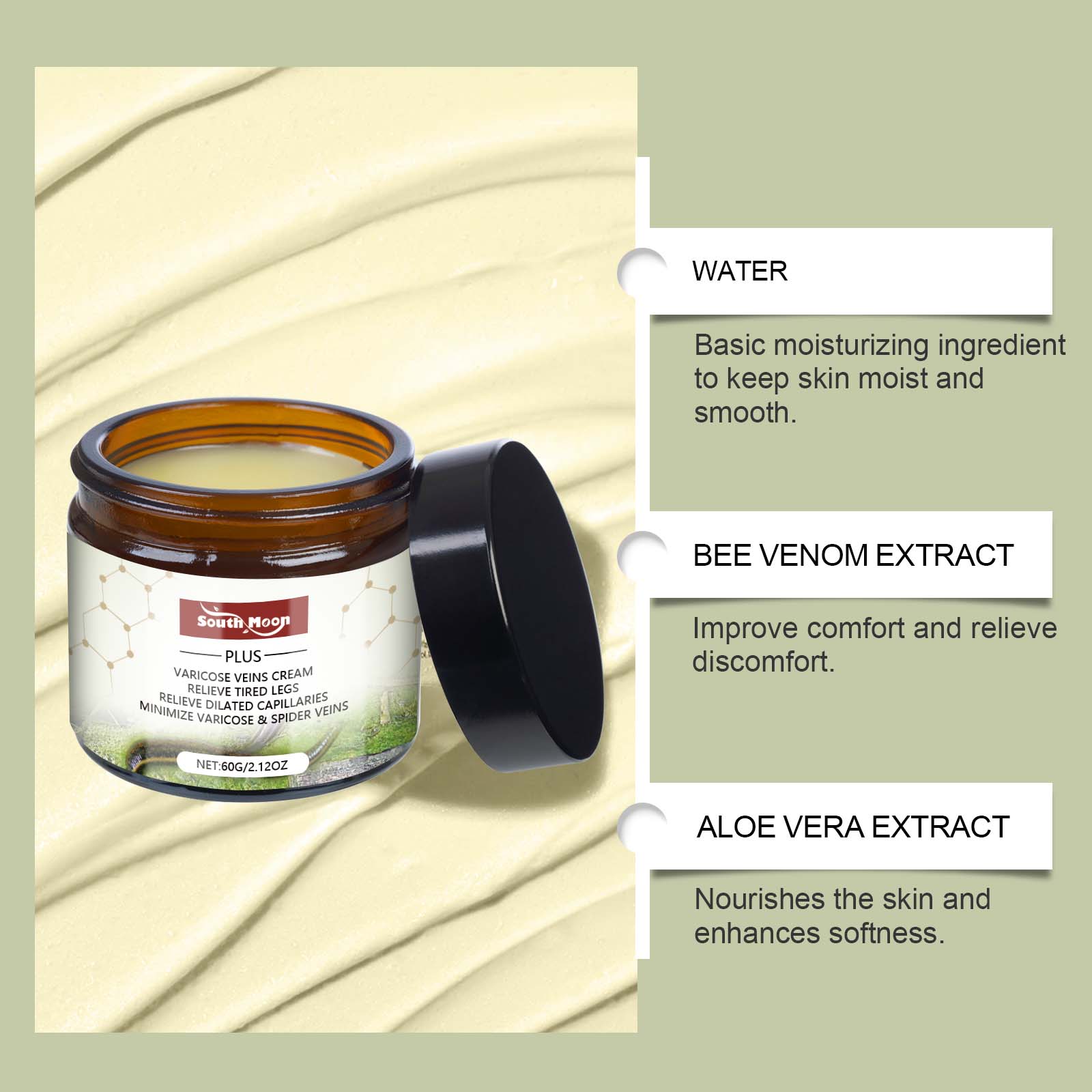 Our leg cream contains aloe vera extract and glycerin. It can improve blood circulation and reduce discomfort caused by blood stasis. Its use method is very simple: clean the leg skin and keep dry, take an appropriate amount of this product, evenly apply to the leg varicose veins, gently massage until absorbed. And can effectively relieve the leg caused by varicose veins heavy feeling.