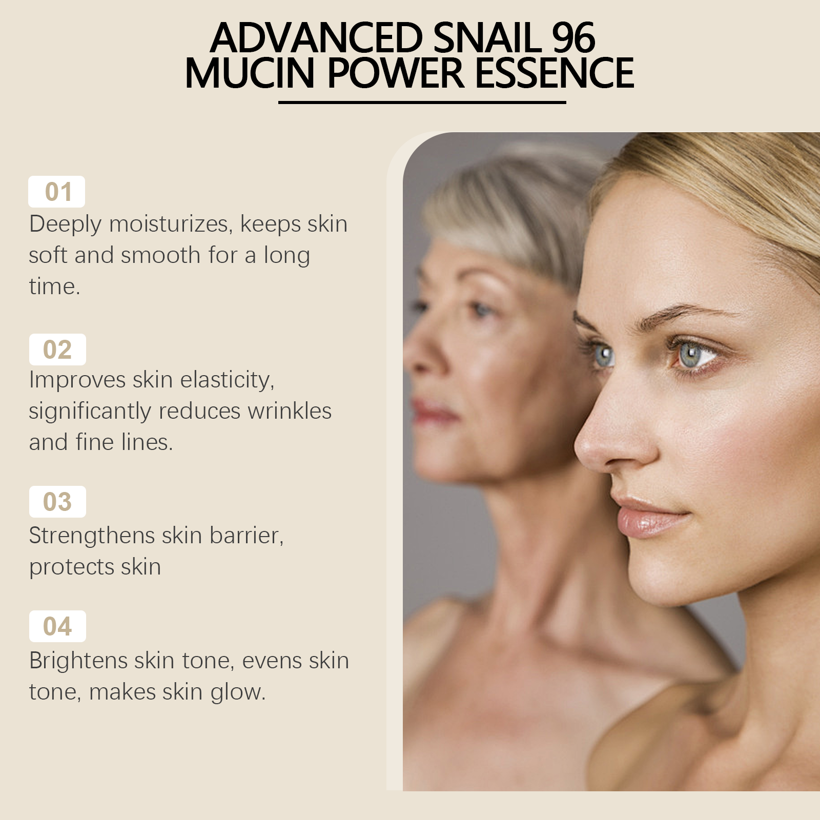 Our snail mucin serum contains snail secretion filtrate, hyaluronic acid, vitamin C(ascorbic acid). It traps moisture. Long-lasting moisturizing leaves skin softer and smoother. Promotes collagen production, significantly reduces fine lines, and stores elasticity. Its use method is very simple: 1. After cleansing, apply appropriate amount of this product evenly on the face. 2. Gently massage the eye socket to promote absorption. Enhances skin barrier function to protect delicate skin. Even out skin tone, brighten skin tone and make skin glow.