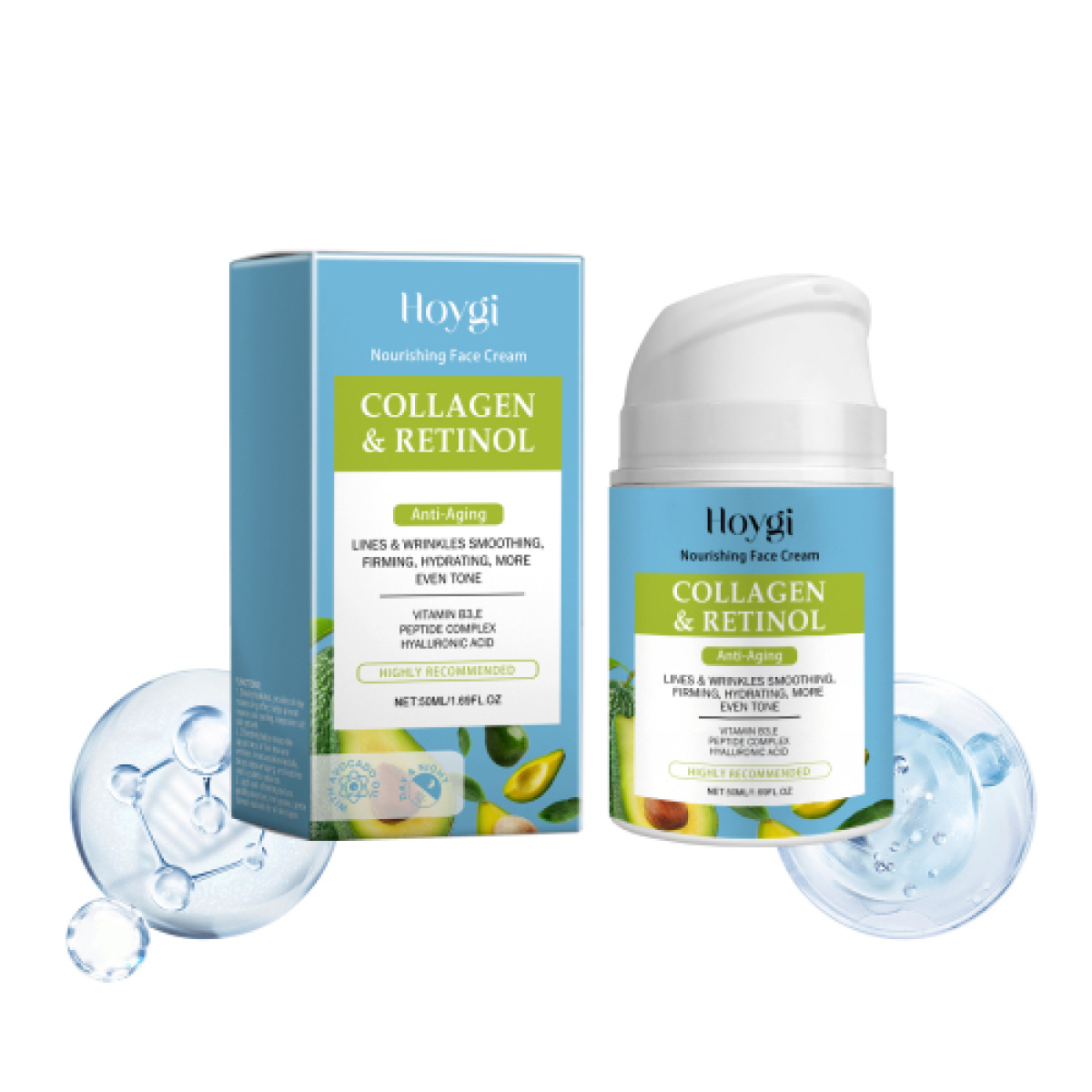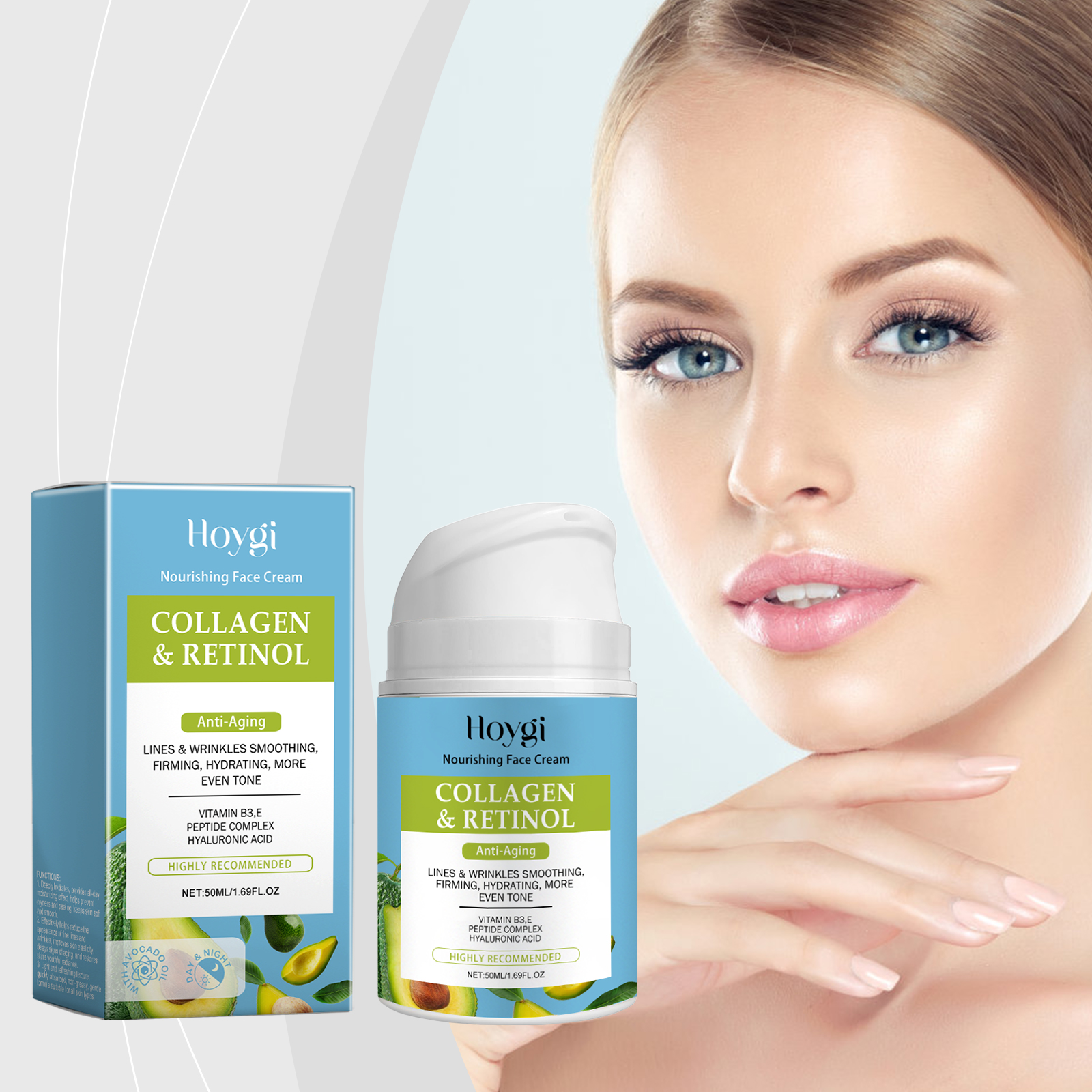 Our Collagen facial moisturizer contains avocado oil, collagen, and hyaluronic acid. It can help increase skin elasticity and improve skin texture. Helps increase skin elasticity and reduce the formation of wrinkles. Its application method is simple: 1. Clean facial skin and keep it dry. 2. Apply appropriate amount of the product evenly on the face. 3. Massage gently in circular motions to promote absorption. Provides additional antioxidant protection to help fight harmful substances in the environment.