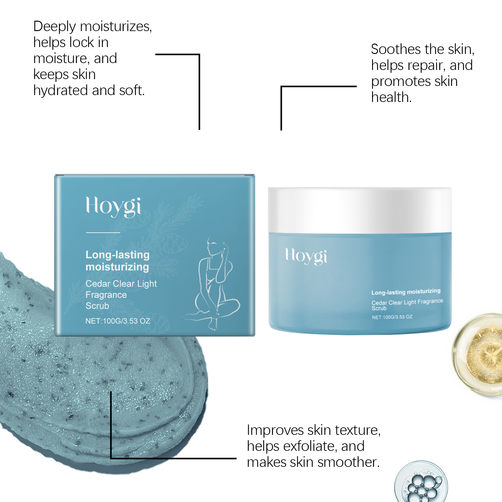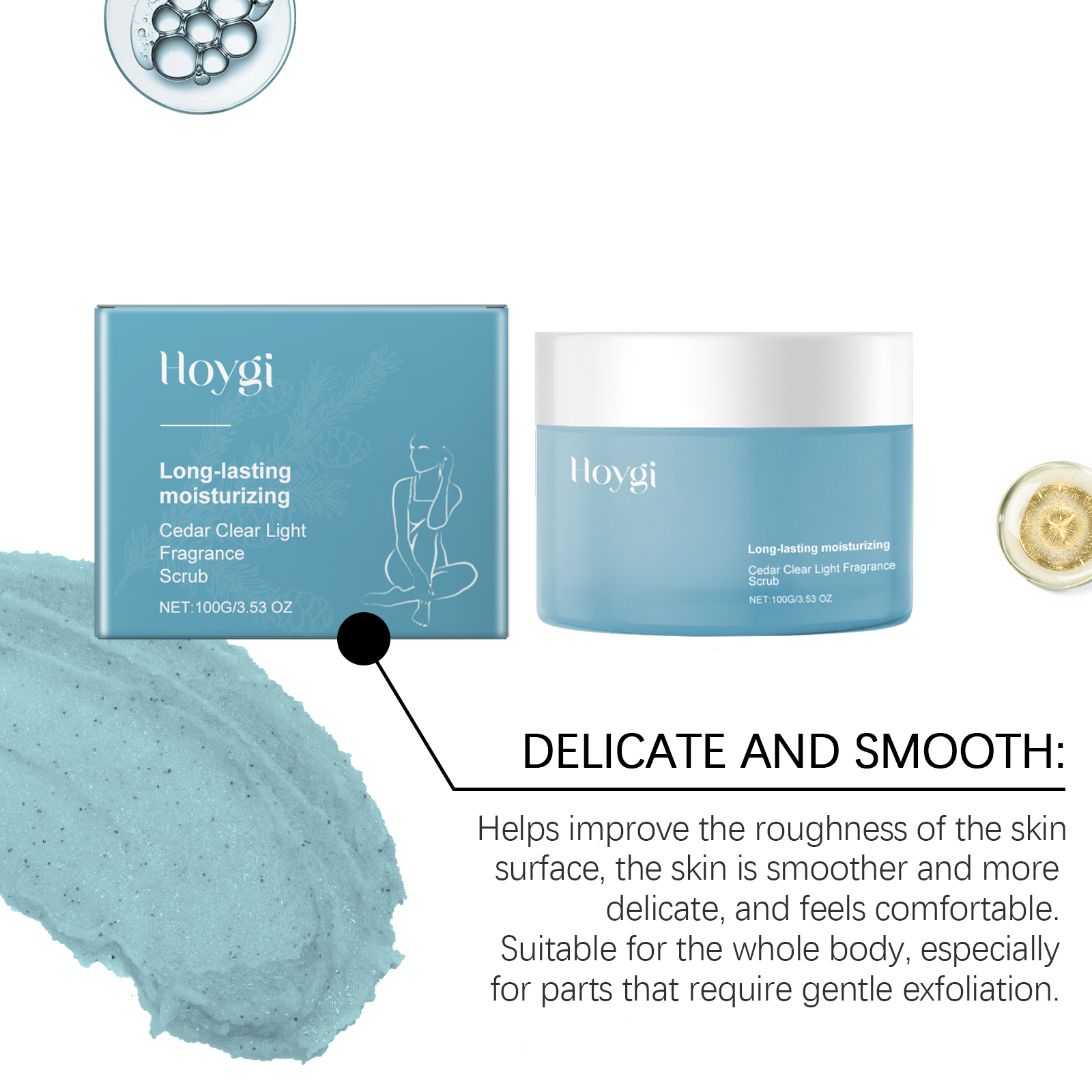 Our cedar scrub contains glycerin, cedar wood oil. It moisturizes skin care and helps keep skin soft and elastic. Easy to apply, fresh and non-stick, soft skin, no residue after use. Its use method is very simple: take a proper amount of clean and dry facial cleanser evenly apply to the face. It can also improve the overall feel and appearance of the skin, making it softer and more delicate. The product is easy to use, simple and efficient, and is essential for daily care.