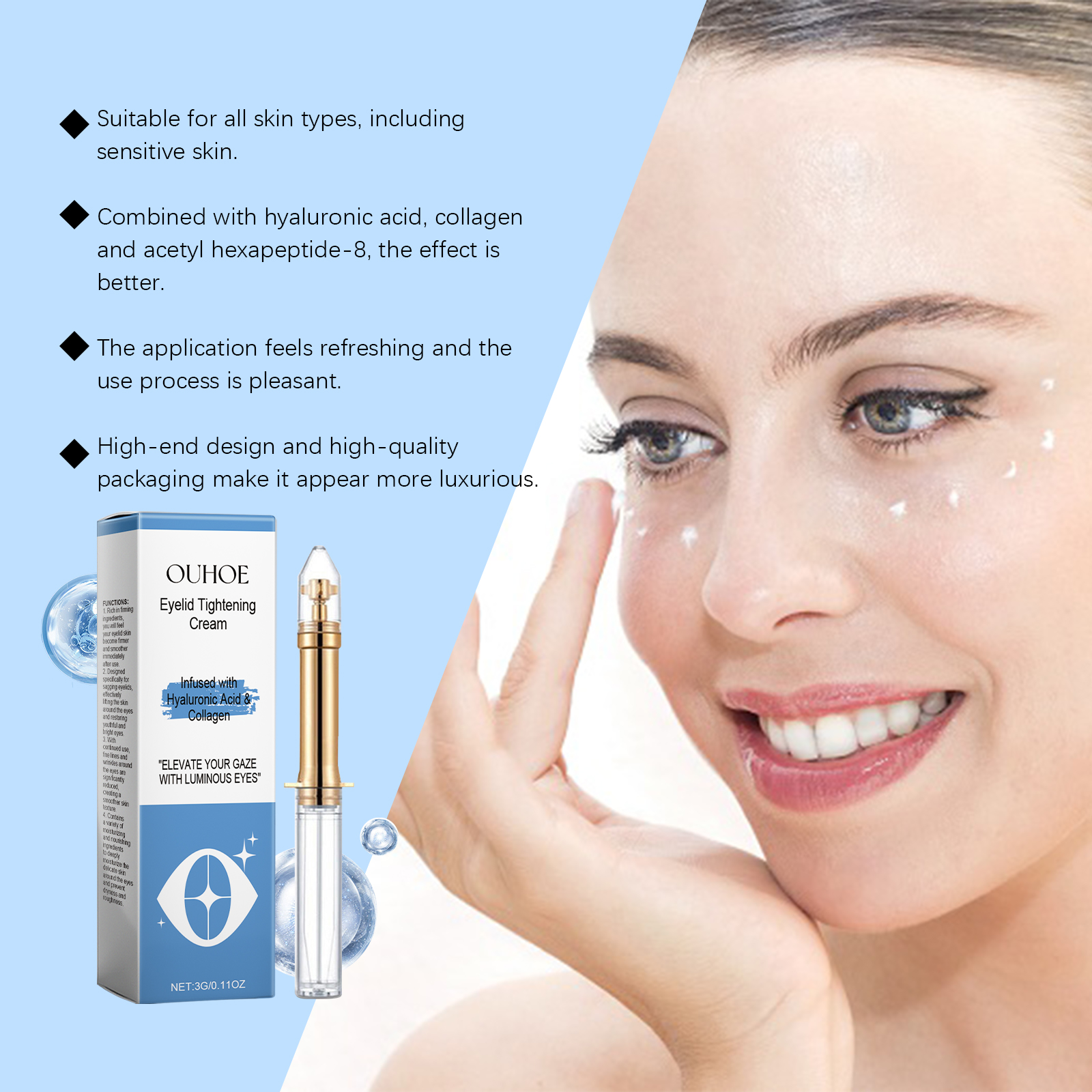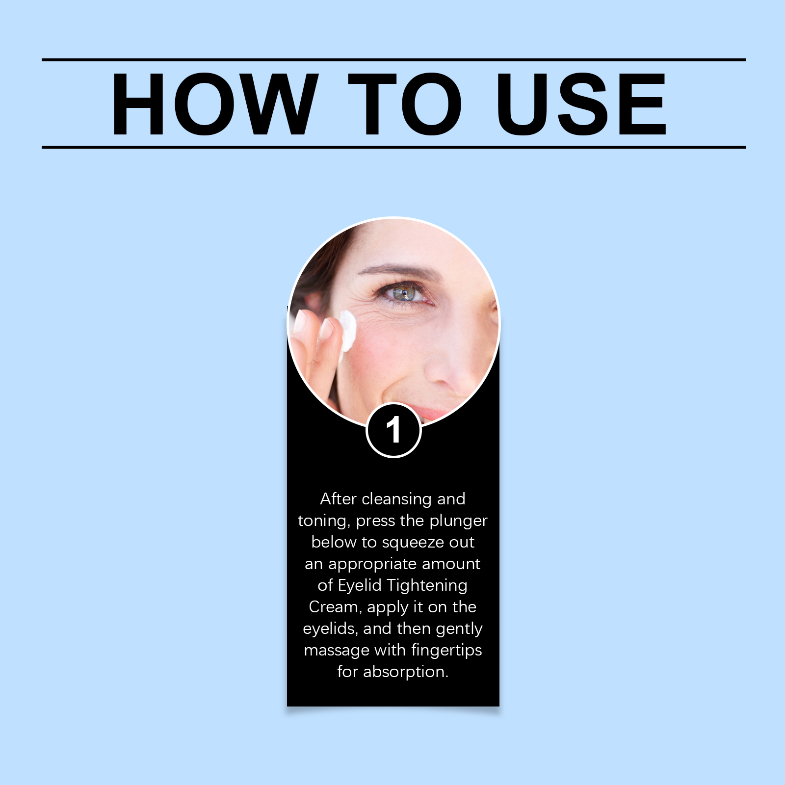 Our eye firming cream contains acetyl hexapeptide-8, coffee extract. It supports the skin structure and reduces fine lines. Its use method is very simple: after cleansing and toning, press the lever below to dispense an appropriate amount of eye firming cream. Apply it to the eyelids and gently massage with your fingers until fully absorbed. It also deeply moisturizes and locks in moisture.