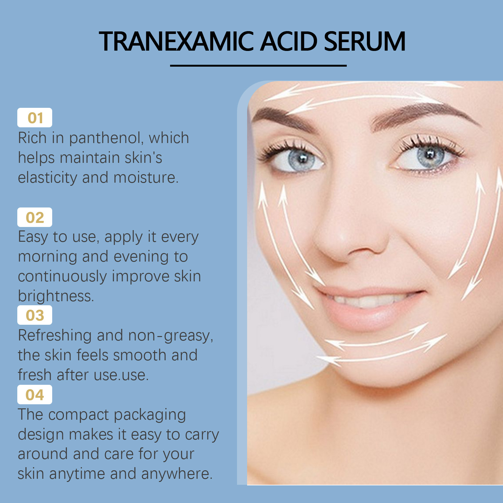 Our Brightening Skin Essence contains glycerin and panthenol (vitamin B5). It can effectively help reduce the appearance of pigmentation spots and make the skin more uniform and translucent. The application method is very simple: thoroughly clean the skin and let it dry, then take an appropriate amount of this product and apply it evenly to the facial and neck skin, and gently massage to promote absorption. It can also help even out the skin tone and make the skin radiant.