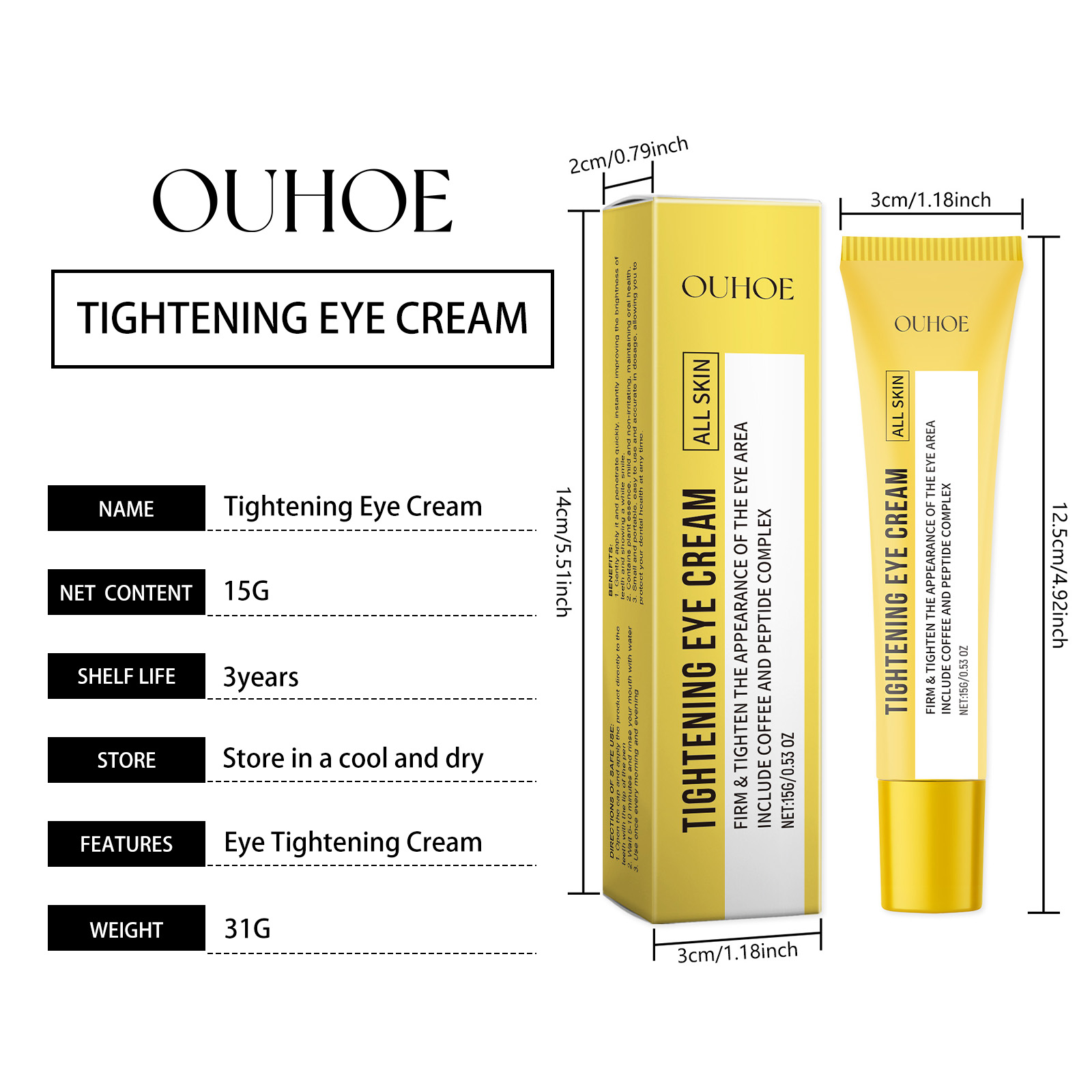 Our moisturizing eye cream contains vitamin E and honeysuckle extract. It can provide comprehensive eye care and improve sagging and dullness around the eyes. Its application method is very simple: clean and dry the skin around the eyes, apply an appropriate amount of eye cream evenly around the eyes, gently massage until absorbed. And can effectively promote microcirculation around the eye, help reduce eye puffiness and bags.