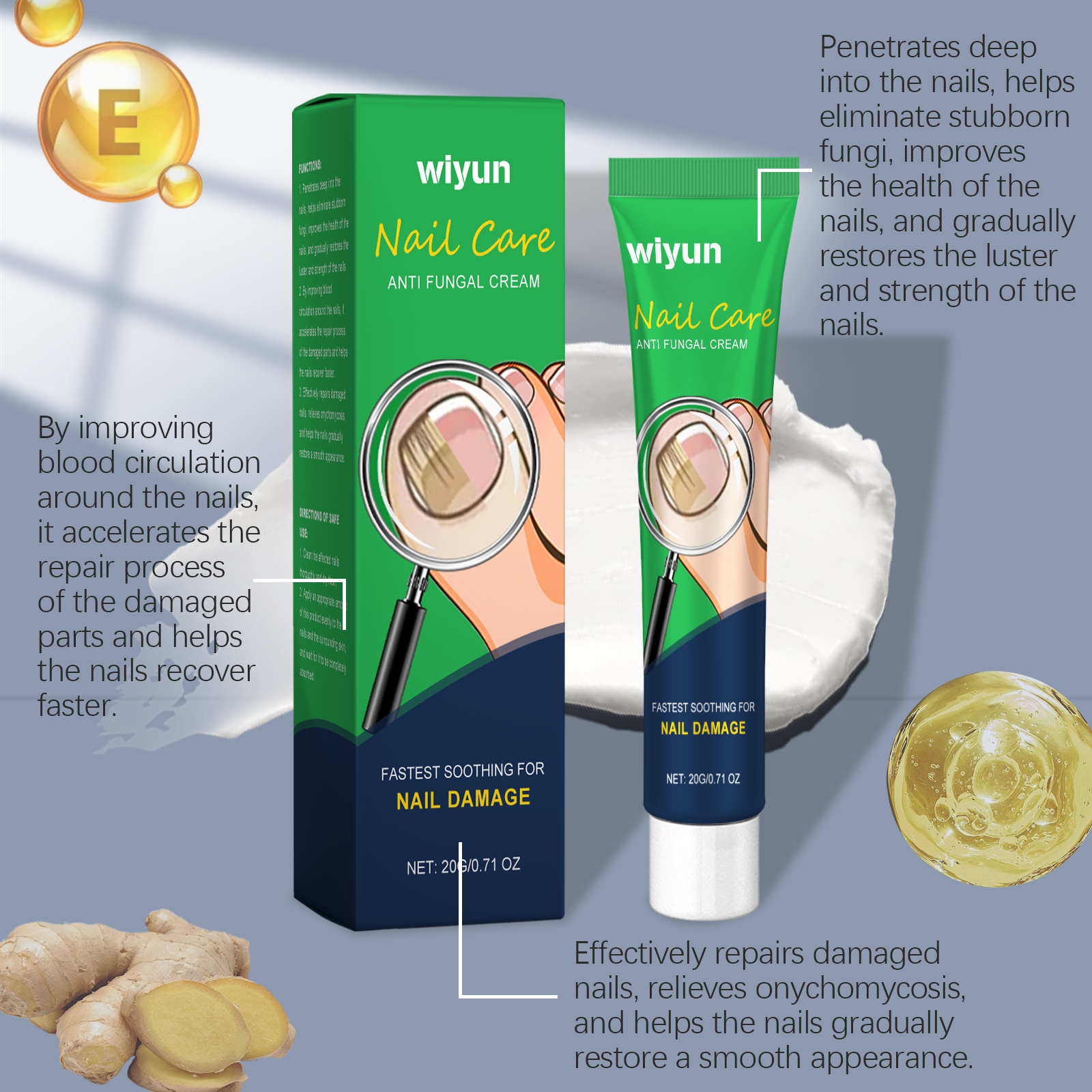 Our nail care and repair cream contains vitamin E(tocopherol), aloe leaf extract. It will soften fading and keep your nails as shiny as ever. Its application method is simple: thoroughly clean the affected nail, dry it, apply an appropriate amount of this product evenly to the nail and surrounding skin until it is fully absorbed. It can nourish nails and skin and help repair damaged tissue.