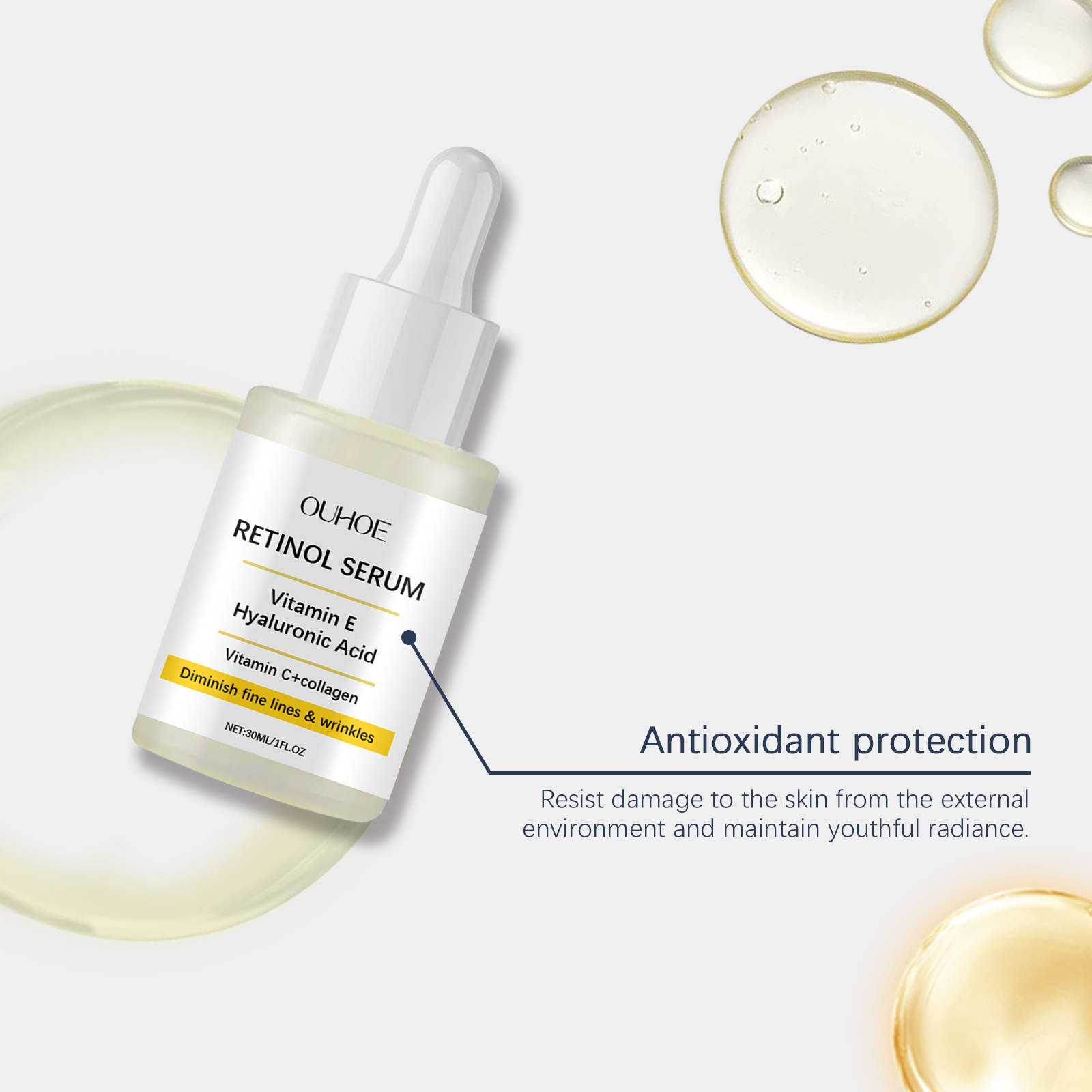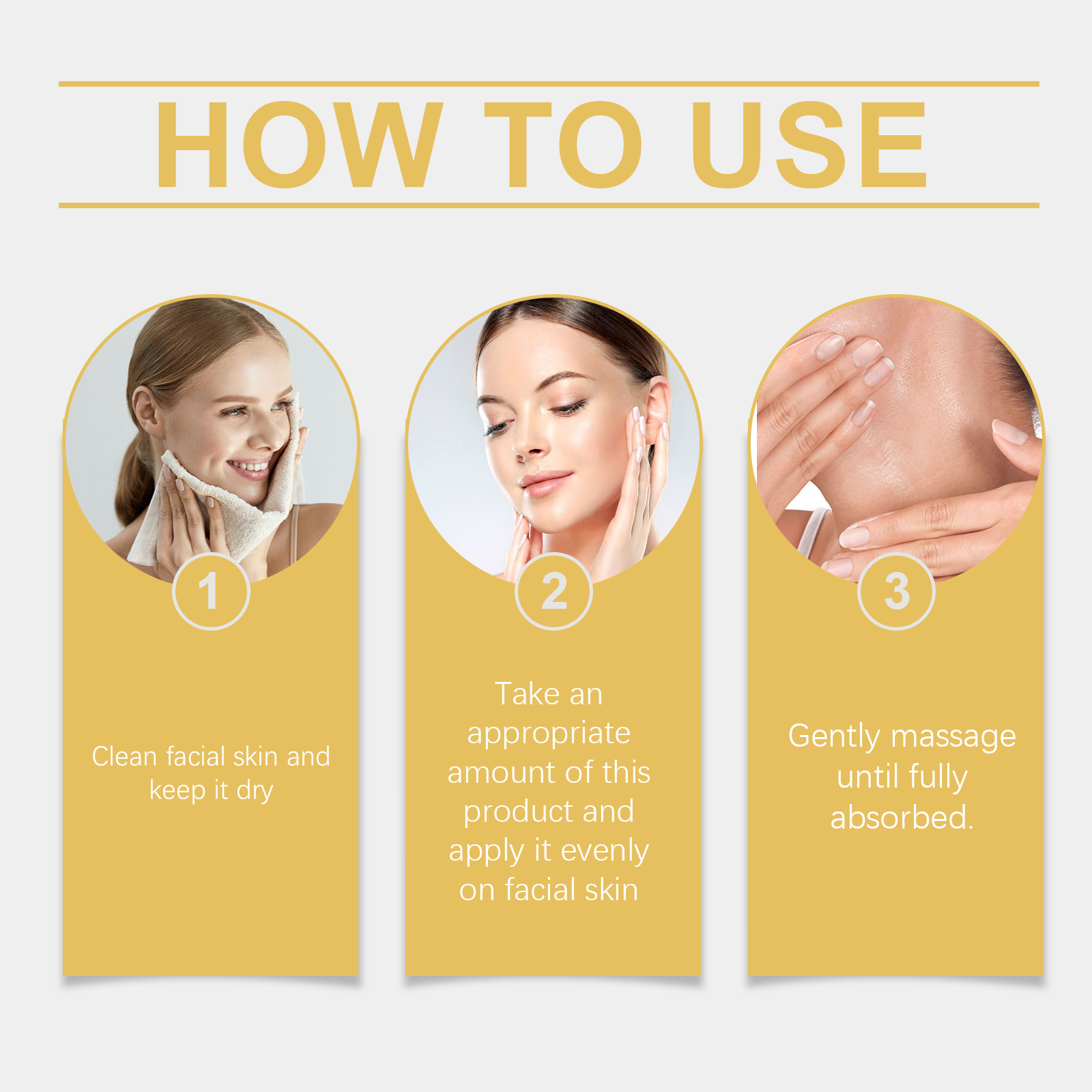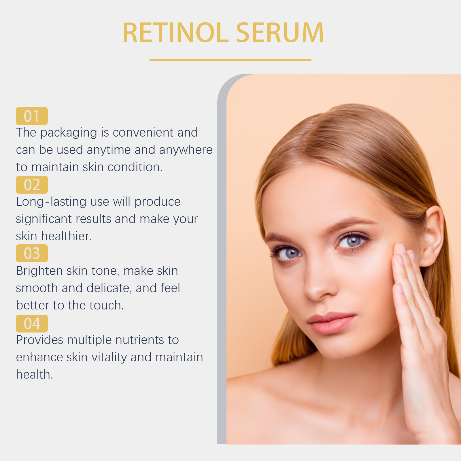 Our firming serum contains retinol, vitamin E(tocopherol) and vitamin C(ascorbic acid). It can effectively improve skin firmness and reduce fine lines. Provides deep moisturizing effect and keeps skin moisturized. Its use method is very simple: 1. Clean facial skin, keep dry; 2. Apply appropriate amount of the product evenly on the face; 3. Gently massage until fully absorbed. Relieve skin discomfort, repair damaged skin, enhance protection.