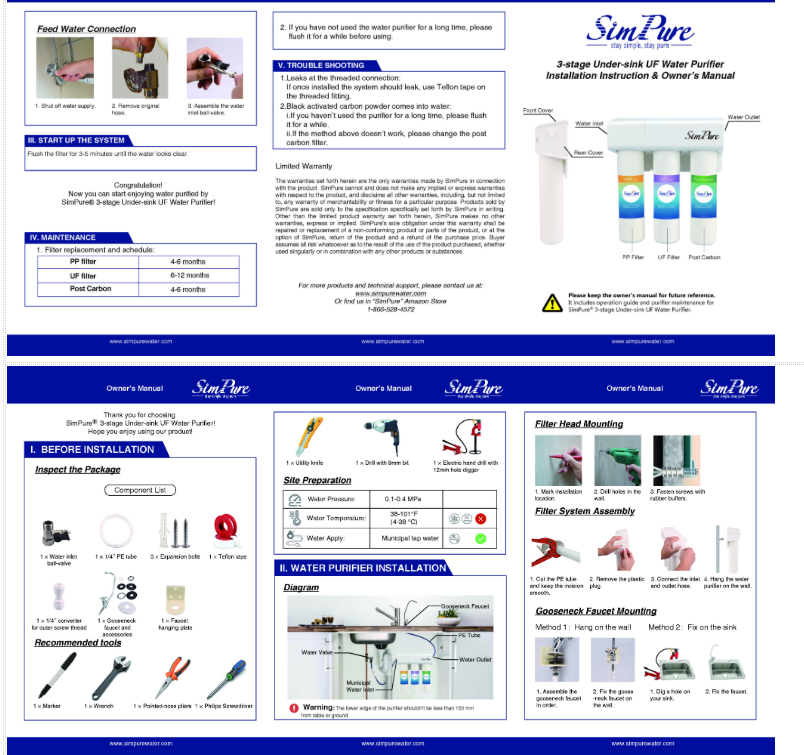 | Notice : In order to get a better filter life, we recommend to use along with SimPure Spin Down Pre Water Filter. |