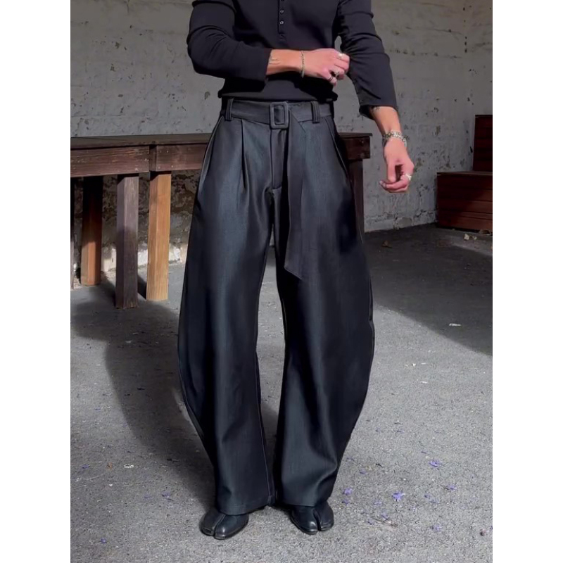 Chic Black Oversized Wide-Leg Pants With High-Waisted Belt