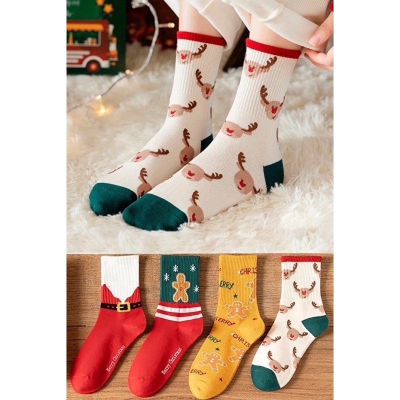 This 4 pair unisex Christmas sock set offers a soft and comfortable structure suitable for daily winter wear. The festive patterns create a seasonal look that matches casual and home outfits. Suitable for both women and men. Ideal for everyday use, gift giving, or holiday occasions.