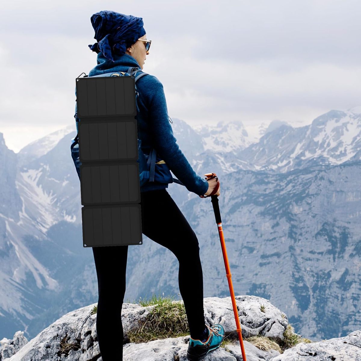 【Portable Solar Panels for Camping】With folded compact size 7.8 × 11× 1.2 inch and 2 Ib light weight, Ericsity solar charger camping can be attached to your backpack or travel bags easily with 2 metal hooks and 4 eyelets. It makes the Ericsity small solar charger ideal for connecting to a backpack while you’re on the hiking or camping. Ericsity portable solar panels for camping is a great option as an iphone solar charger if you’re taking an extended camping trip or if you’re traveling.
