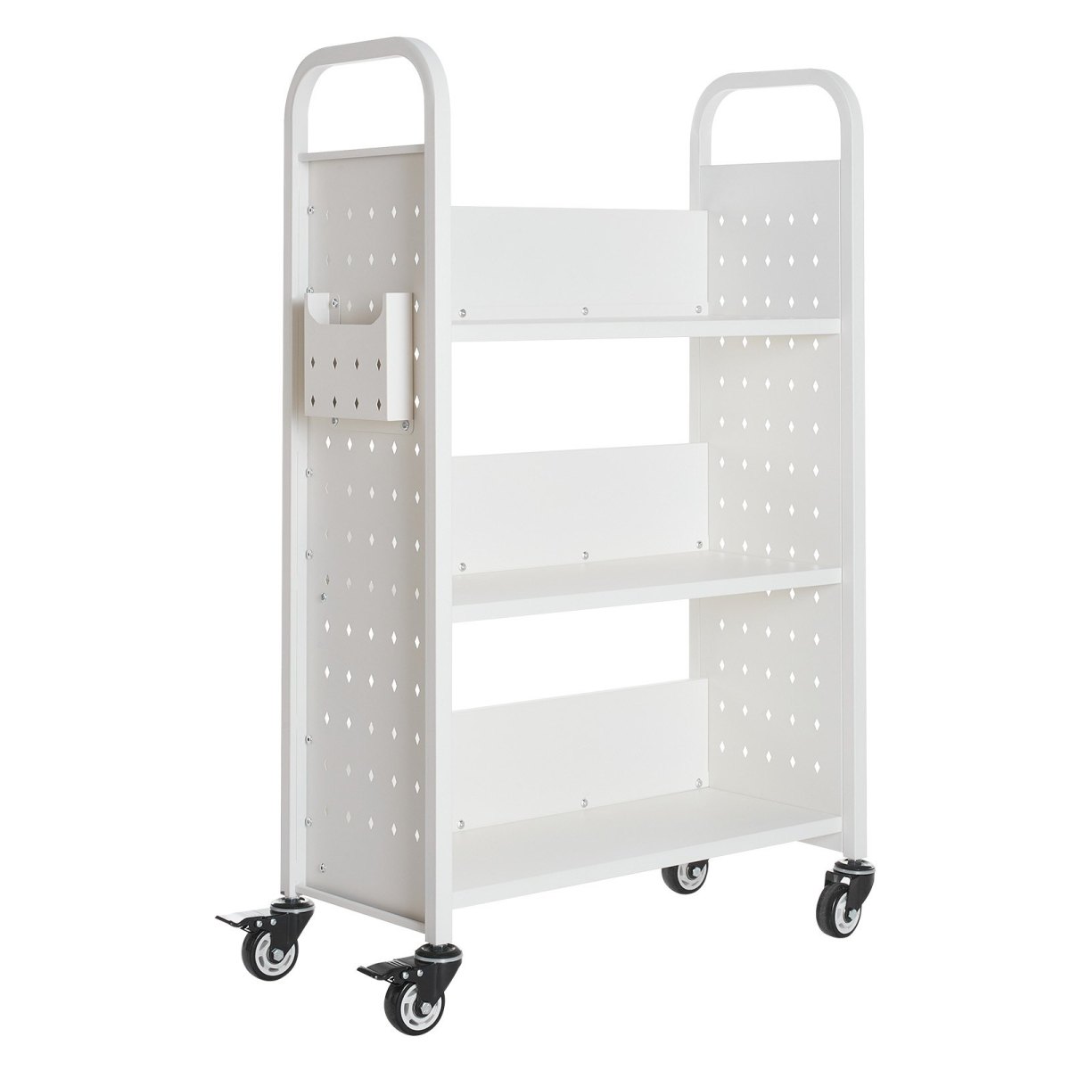 Extra Large Capacity: This 3-tier book cart with 13.7-inch high shelves holds a ton of books or office supplies! It’s also equipped with side compartments for A4 folders/tablets—ideal for libraries, home use, and more