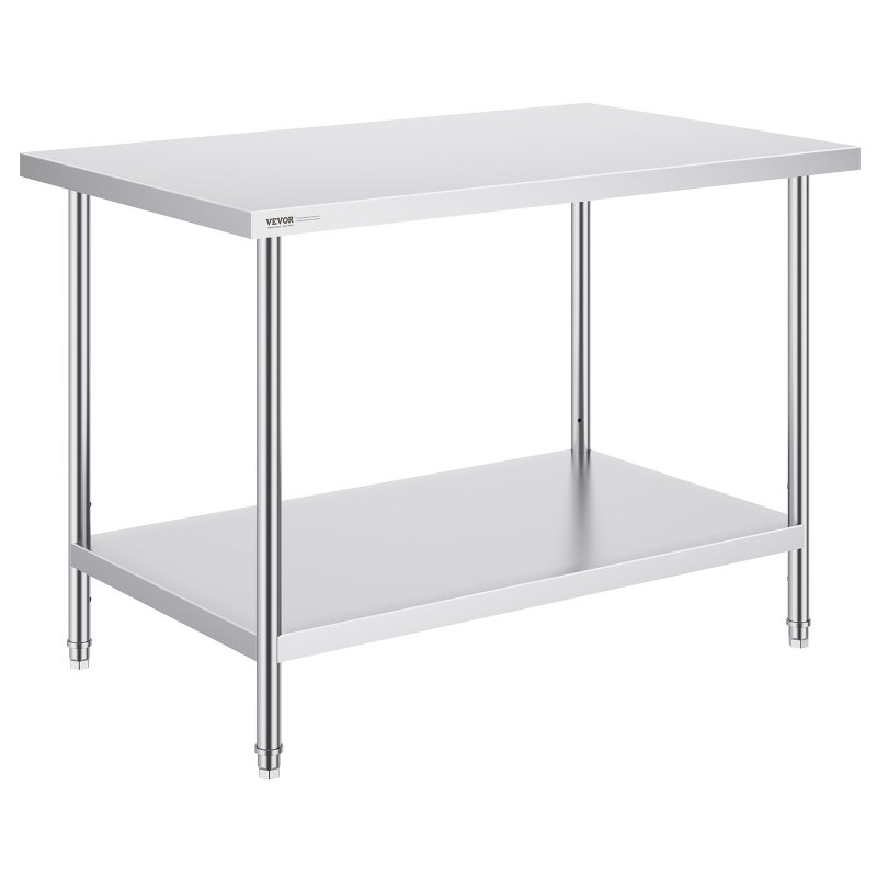 High-Quality Stainless Steel: This work table, measuring 30 x 48 x 34 inch, is made from SUS201 stainless steel for the tabletop, shelves, and legs. It offers superior rust resistance, a sleek appearance, and a smooth surface that is easy to clean with a simple wipe. It meets strict public health standards, ensuring long-lasting protection for your health.