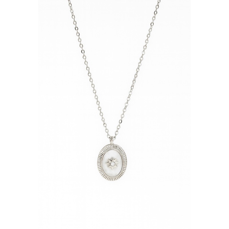 This stainless steel silver stone flower necklace features a bright and elegant design that enhances both casual and formal outfits. The detailed flower pendant is accented with sparkling stones that add a soft feminine shine. Crafted from high quality stainless steel, it is resistant to tarnishing and maintains its polished appearance over time. Lightweight and comfortable to wear, it is an ideal choice for women who appreciate refined minimal and floral inspired jewelry.