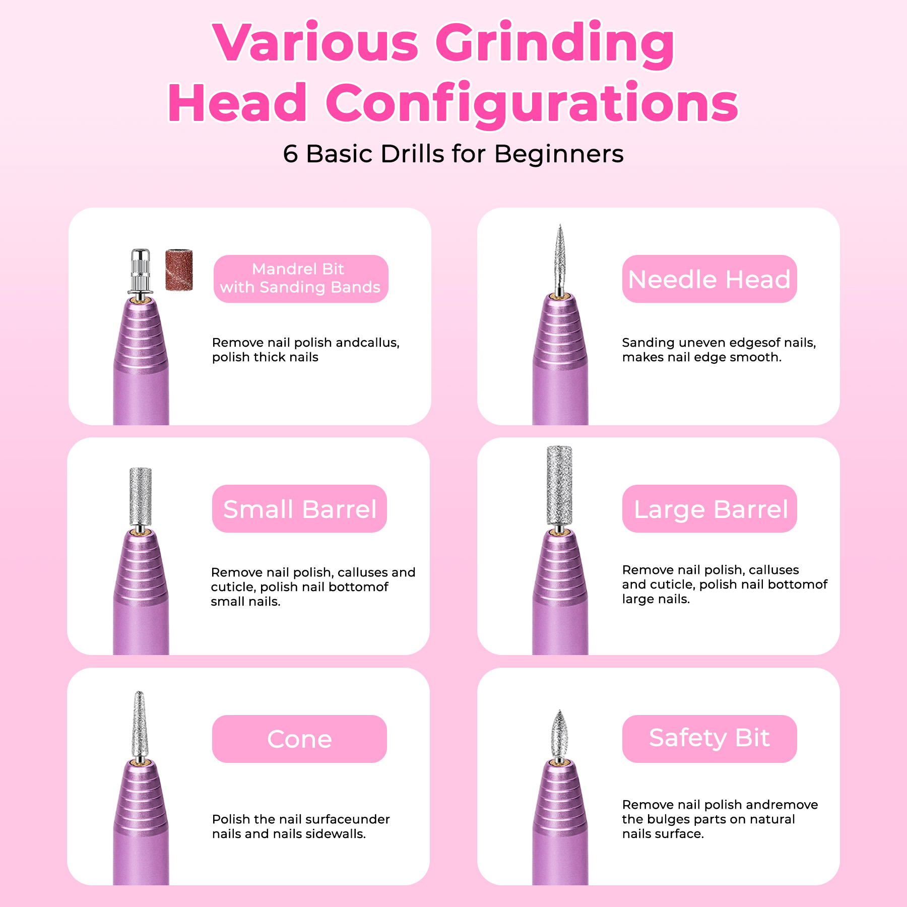 Durable, Low Noise and Low Heat: Our electric nail drill is durable, low noise, and low heat. Equipped with an upgraded motor, it's powerful, quiet, and has good heat dissipation function that extends its service life