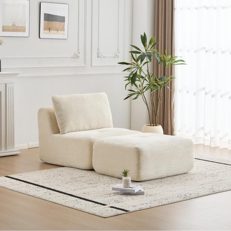 Product Name:Modern Memory Foam Compressed Sofa,Single Chaise Longue for Living Room,Pet-Friendly Cloud Modular Sectional Sofa,Corduroy Fabric,Movable Ottoman,No Assembly required,Beige
