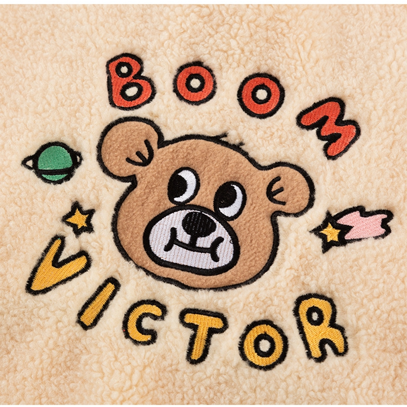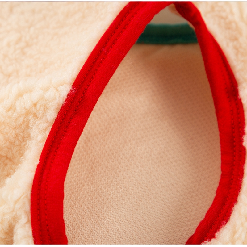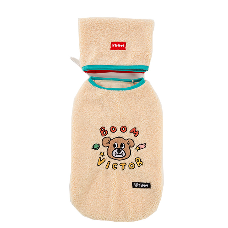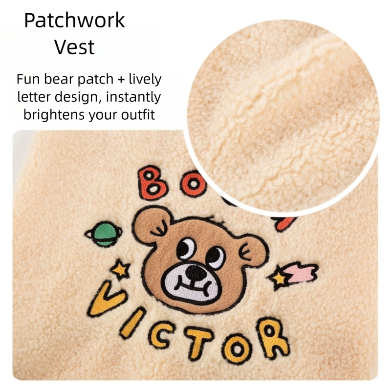 A comfortable and stylish pet vest for your big dog! This beige vest is made of soft Sherpa fabric with a bear pattern, ensuring your pet stands out. The high collar and plush material provide extra warmth, and this vest is perfect for cool days. It combines comfort, fashion and durability, making it an ideal choice for daily walks or casual wear. This is a must-have for pet parents. They hope their large, furry companions stay warm and look very cute!