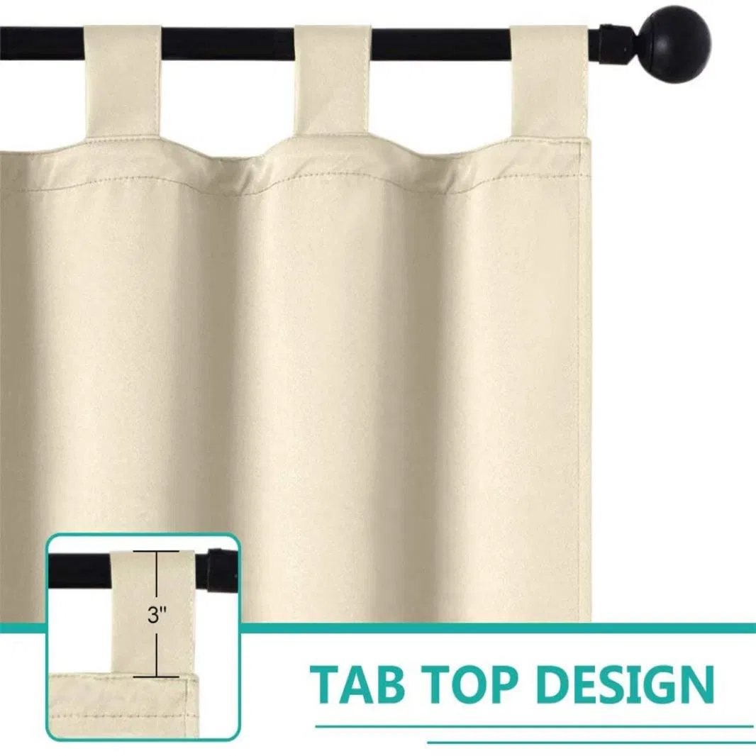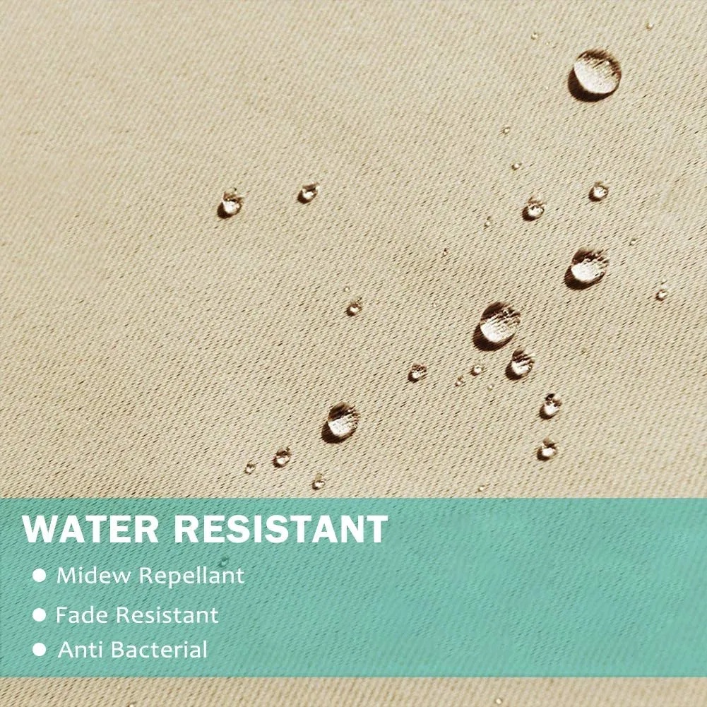 This beige outdoor curtain blocks sunlight and resists weather, adding a cozy touch while protecting your outdoor space stylishly.