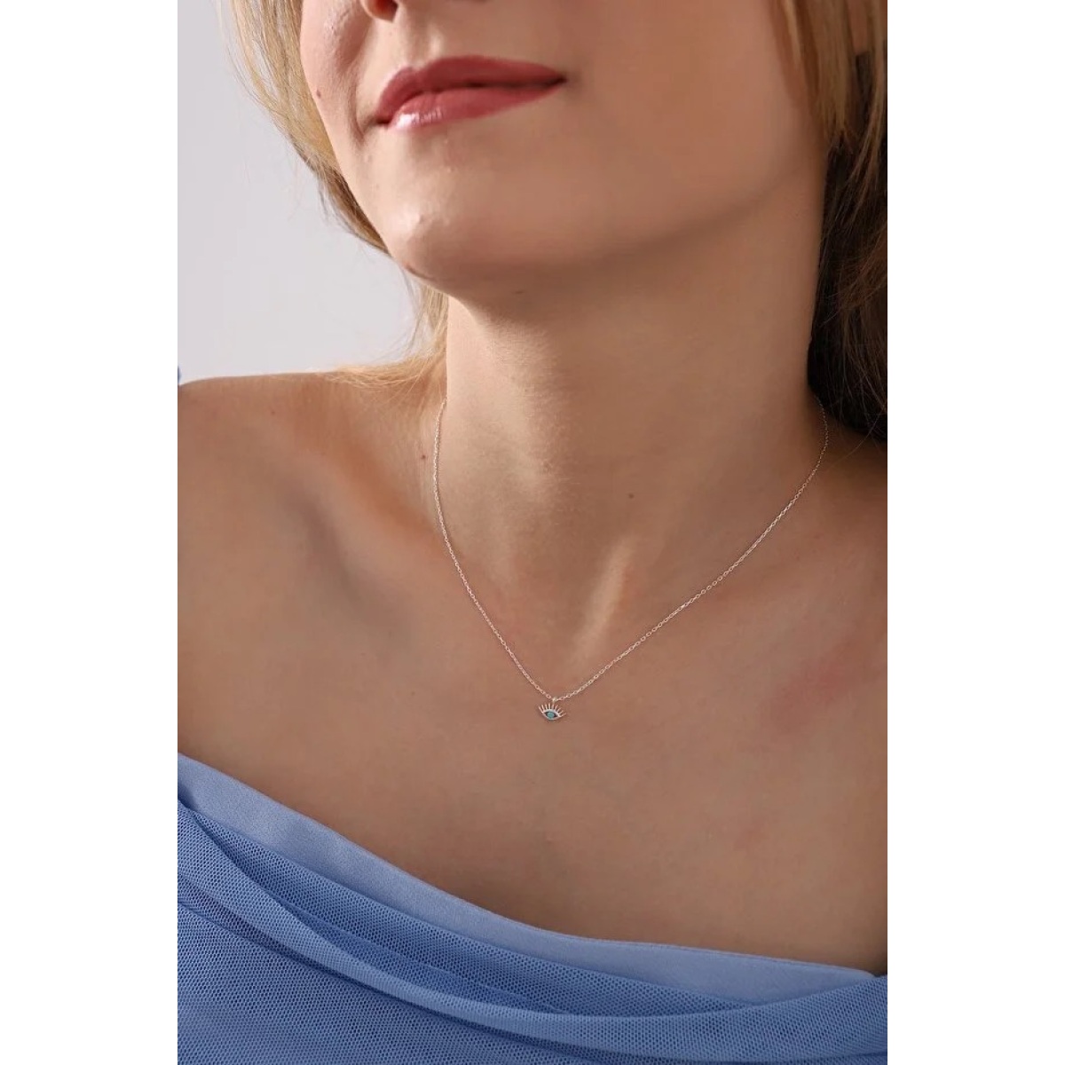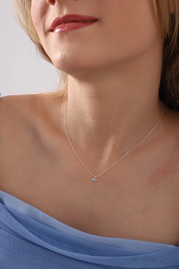 This necklace features a 925 sterling silver chain with a turquoise stone eyelash eye pendant design.