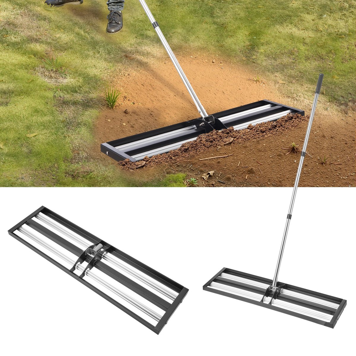 TThicker and Stronger: The lawn leveling tools, made of stainless steel and aluminum alloy materials, with a 1.7mm thick base plate, enhance corrosion resistance while maintaining strength. The lawn leveler is less likely to crack or deform over long-term use.