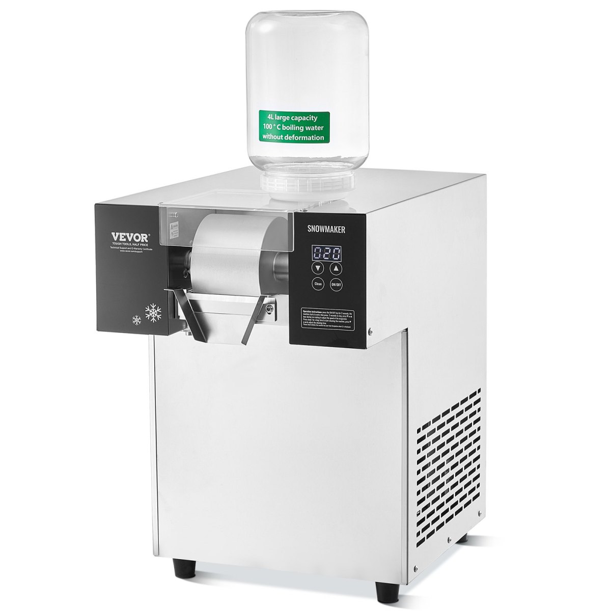 Efficient, Continuous Ice Production: The commercial snowflake ice machine features a high-performance stable air-cooling system, achieving quick cooling in 40 seconds and producing ice in just 3 seconds after pre-cooling, capable of producing approximately 397 lbs / 180 kg of ice per day, ideal for making various beverages such as sugar drinks, alcoholic drinks with an alcohol content of less than 10°, fruit juice drinks, and milk.