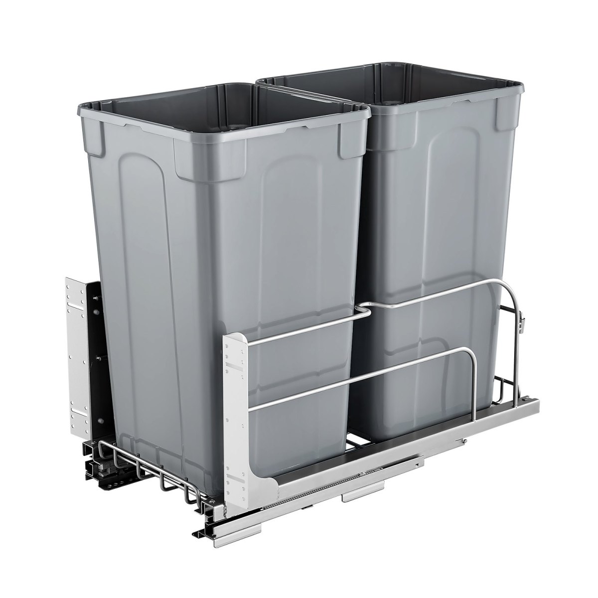 Dual 27QT Capacity: Our pull out garbage can comes with a 27 + 27QT large capacity, perfectly meeting the needs of both home and commercial use. It helps eliminate the hassle of frequent trash disposal. The dual-bin design also aids in waste sorting. With bottom installation, it can hold up to 66 lbs / 30 kg of trash and slides in and out effortlessly