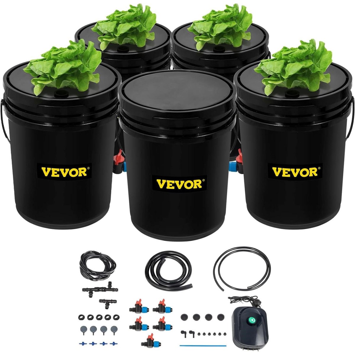 5PCS PP Buckets: Our DWC hydroponic system is equipped with 5 buckets(1 reservoir bucket and 4 plant buckets) made of high-quality PP material for long-lasting use. Each plant bucket features a 5" basket and can hold up to 5 gallons, large enough to help you grow multiple plants at a time.