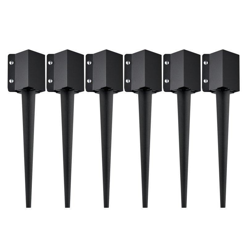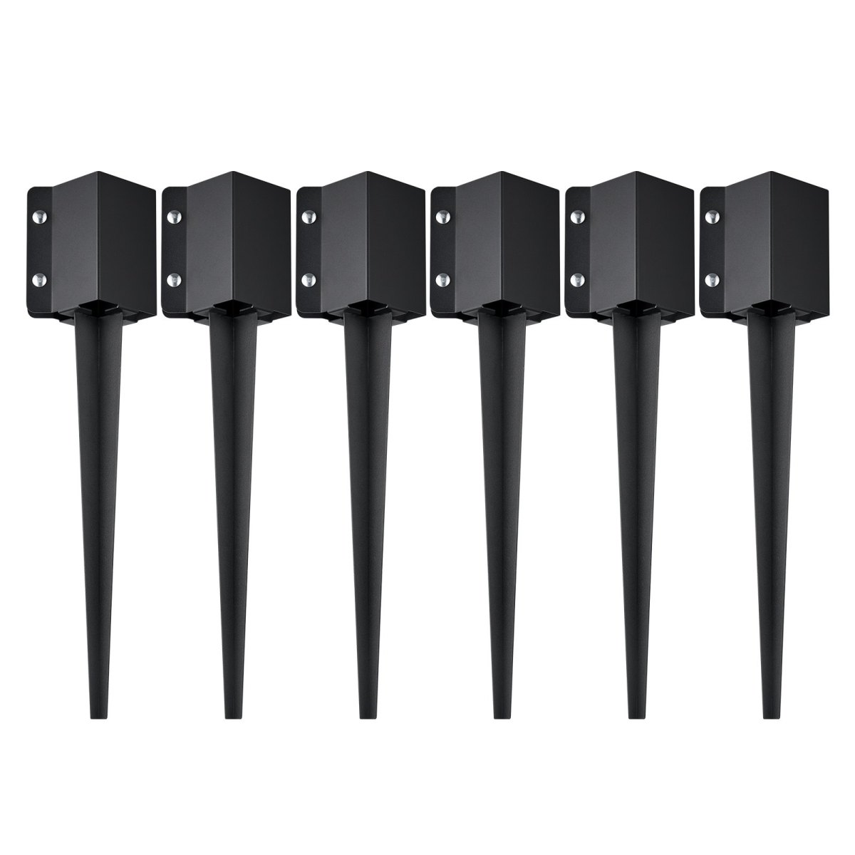 Fence Post Anchor Ground Spike, 6 Pack 24 X 4 X 4 Inches Outer Diameter (Inner Diameter 3.5 X3.5 Inches), Metal Black Powder Coated Post Stake Ground, For Mailbox Deck Garden Railing