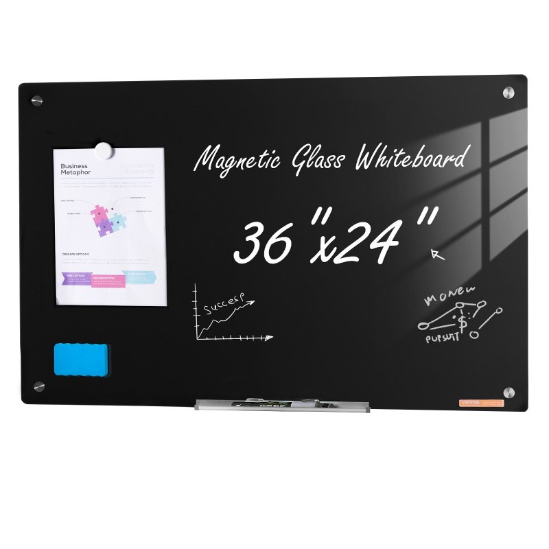 Frameless Design: The 36"x24" frameless glass whiteboard exudes simplicity, especially with a sturdy tray for convenient marker storage. Enjoy easy writing, wiping, and ample space for creativity, fostering a more efficient and comfortable workspace.