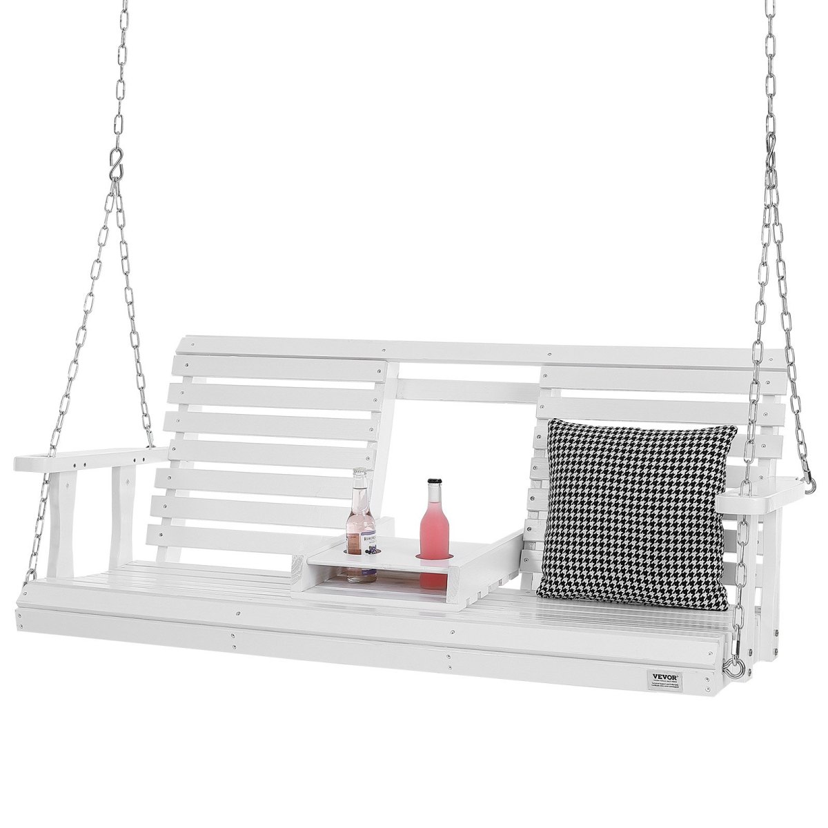 Wooden Porch Swing 5 Ft, Patio Bench Swing For Courtyard & Garden, Upgraded 880 Lbs Strong Load Capacity, Heavy Duty Swing Chair Bench With Hanging Chains For Outdoors, White