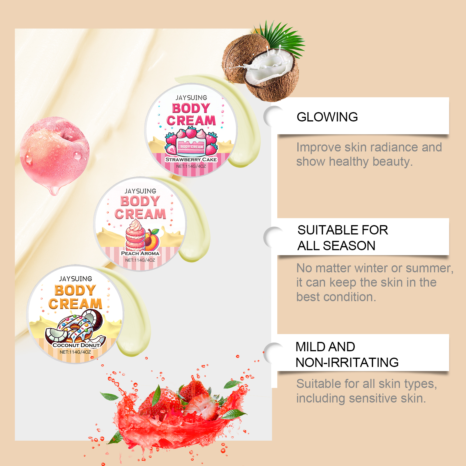 Our peach Macaron body milk contains beeswax and Jojoba oil. It can be designed for the whole body to penetrate deeply, lock in moisture for a long time, solve dry problems, and restore skin tenderness and elasticity. Its use method is very simple: after bathing, take appropriate amount of this product on the palm, melt with the palm temperature and evenly apply on the skin of the body, gently massage to promote absorption. It also keeps the skin moisturized and non-greasy throughout the day, giving off a healthy glow from the inside out