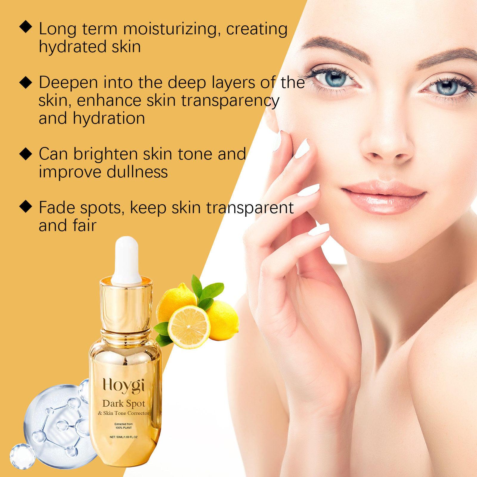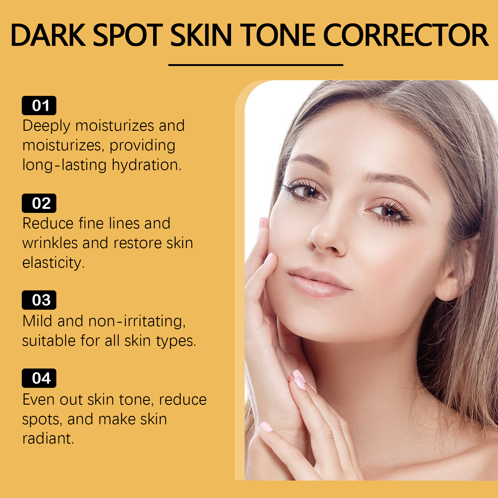 Our facial repair serum contains glycerin, hyaluronic acid and niacinamide. It keeps skin soft, prevents dryness and strengthens the moisturizing barrier. Reduce the formation of new spots, both prevention and repair. Its application method is simple: 1. Clean and dry facial skin. 2. Apply proper amount of serum to face evenly. 3. Gently massage until absorbed. Suitable for various skin types, easy to integrate into daily care. Improves skin texture, improves roughness and makes skin smooth.