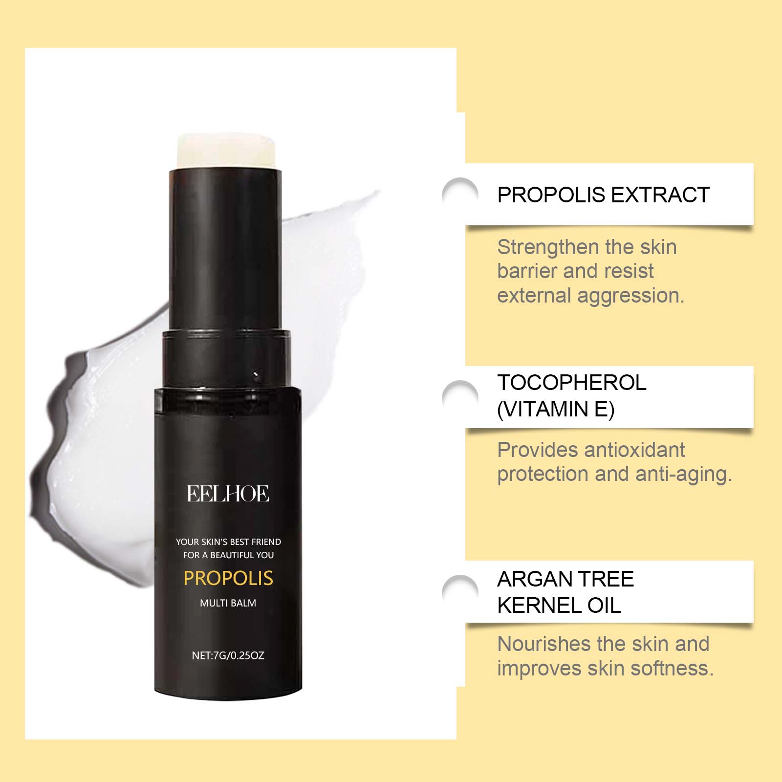 Our propolis firming and moisturizing stick contains propolis extract, beeswax and argan kernel oil. It strengthens the skin barrier against external aggression. Provides antioxidant protection and anti-aging; Nourish skin and improve skin softness. Its application method is simple: 1. Clean the facial skin and keep the skin smooth. 2. Open the bottle cap, twist the product well, and apply directly to the face. 3. Gently massage until completely absorbed. Handheld size, easy to carry. Provide lasting nutrition for the skin.