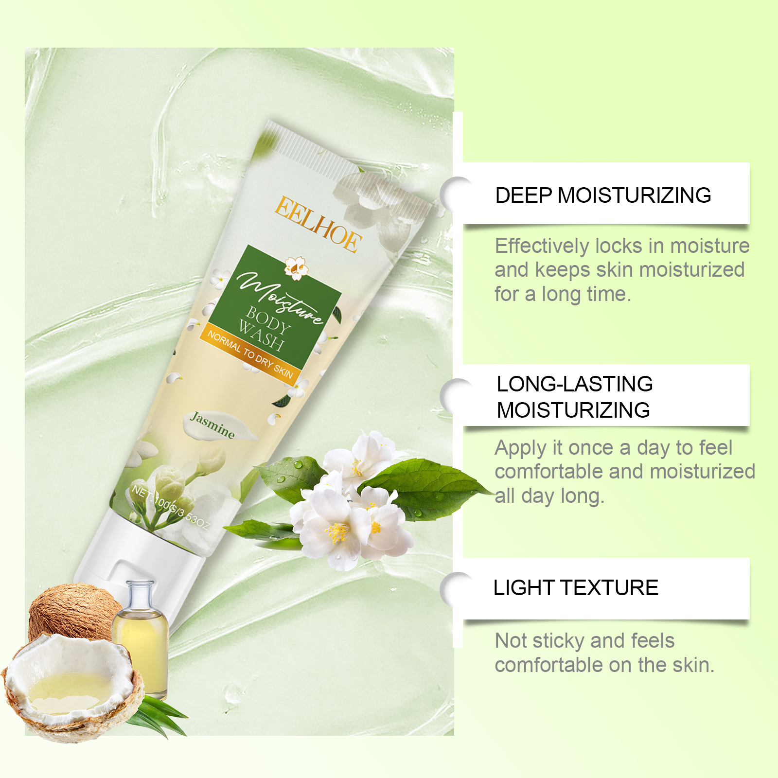 Our Jasmine Moisturizing Body wash contains cocoyl betaine and propylene glycol. It nourishes the skin and soothes the mood. Its use method is very simple: clean and dry skin, take an appropriate amount of body wash, knead into a foam, evenly apply on the body, gently massage until thoroughly clean, and finally rinse off with water. And it can easily wash away dirt and keep your skin clean.