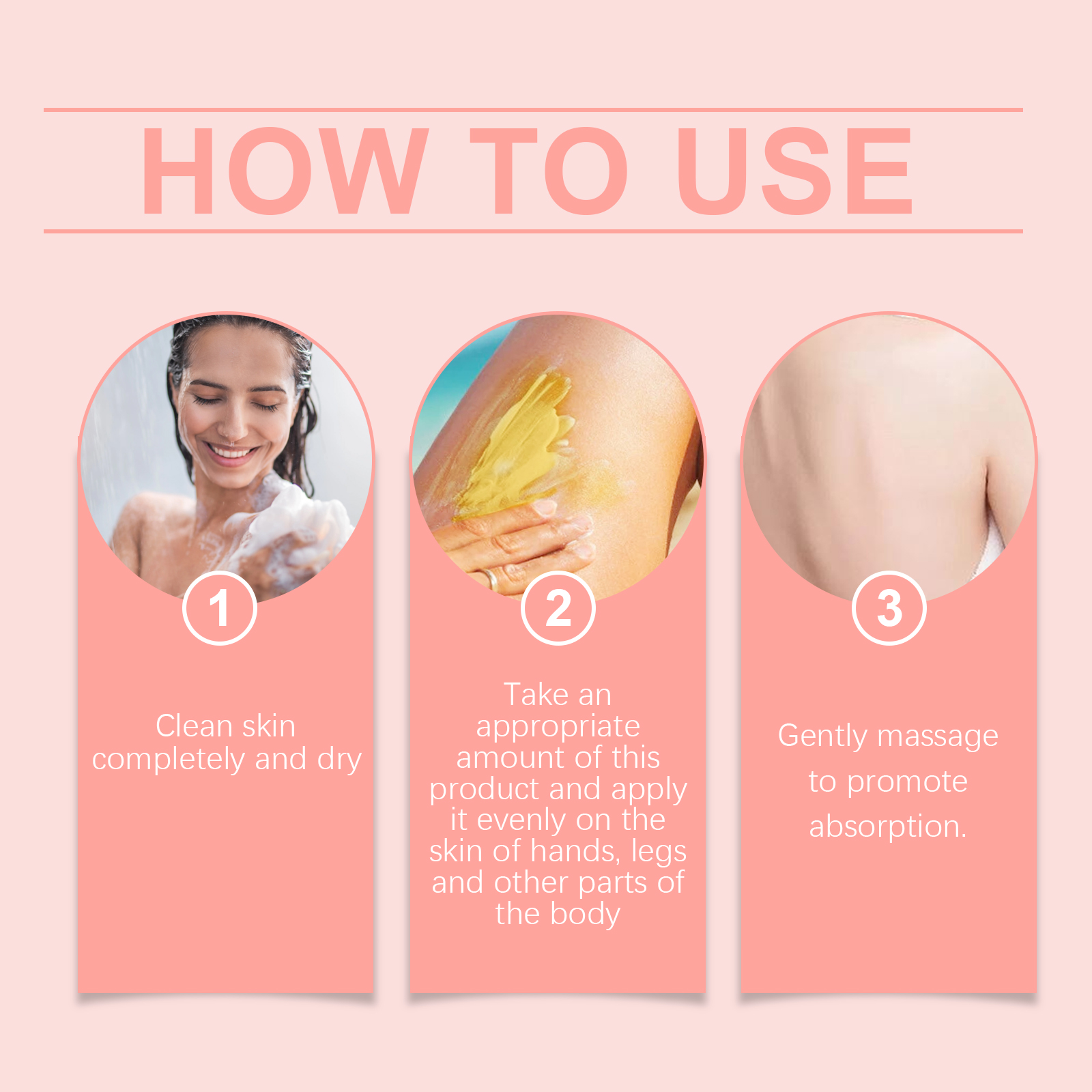 Our moisturizing skin cream contains mango seed oil, Jojoba seed oil, avocado oil. It provides long-lasting moisture, leaving skin soft, smooth and with a healthy glow. Its application method is simple: 1. Thoroughly clean and dry the skin; 2. Apply appropriate amount of the product evenly on hands, legs and other parts of the body; 3. Massage gently to promote absorption. Prevents dryness, keeps skin hydrated and smooth throughout the day, and reduces tension.