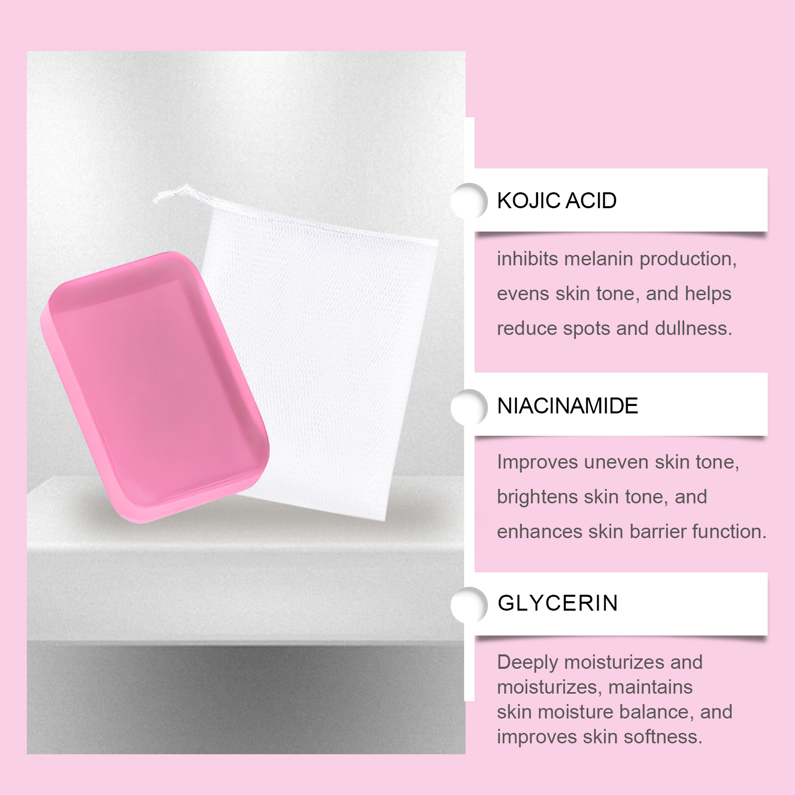 Our skin care soap contains sodium palmitate and glycerin. It can foam delicate and rich, easily cover the skin, bring cleansing enjoyment. It whitens and brightens the skin, making your skin whiter. Its application is simple: Place this product into a soap foam mesh and rub it with a wet palm until a rich foam forms. Apply the foam to the face and body skin and massage gently to help care for the skin. Finally, rinse with water. And the skin can feel smoother and more comfortable after use.