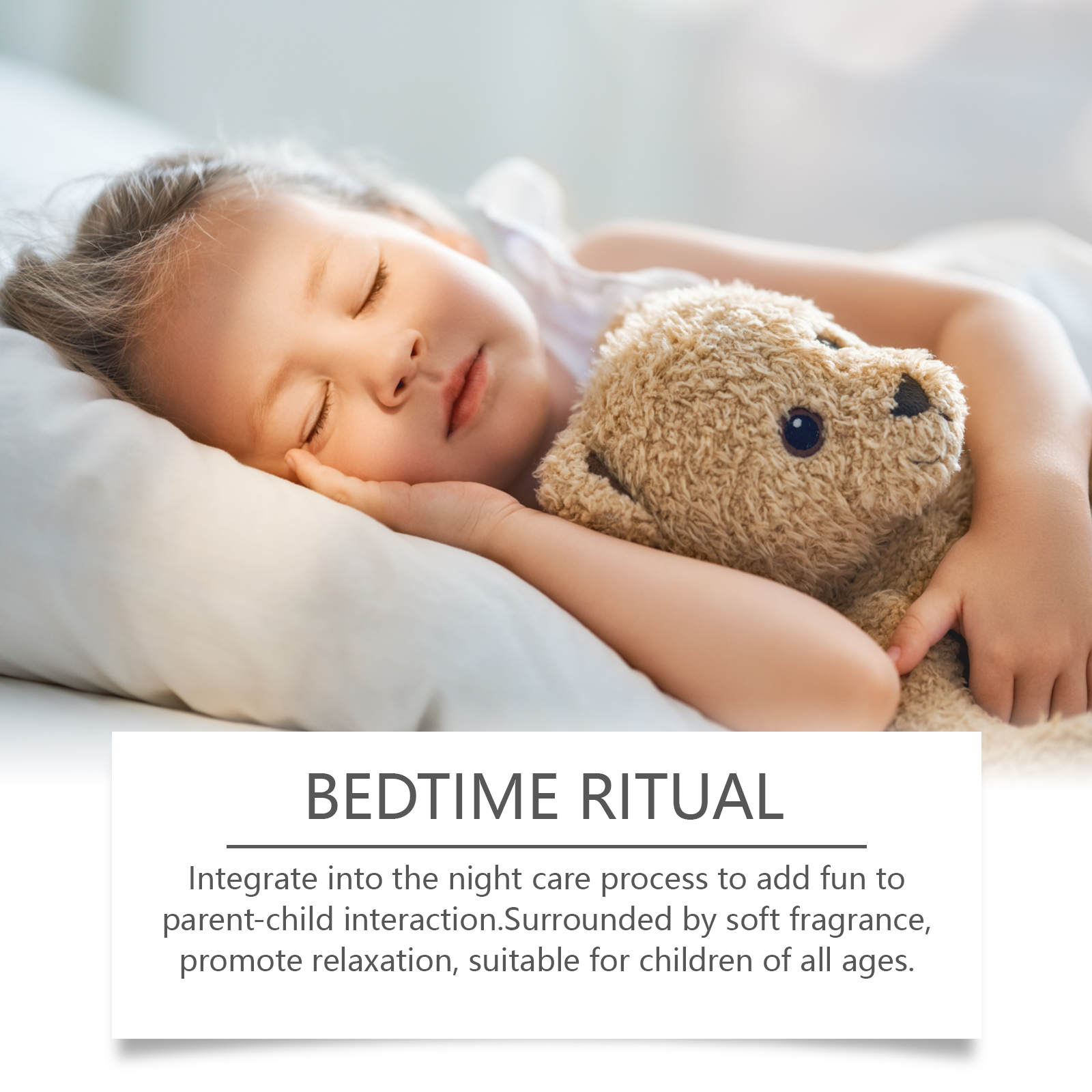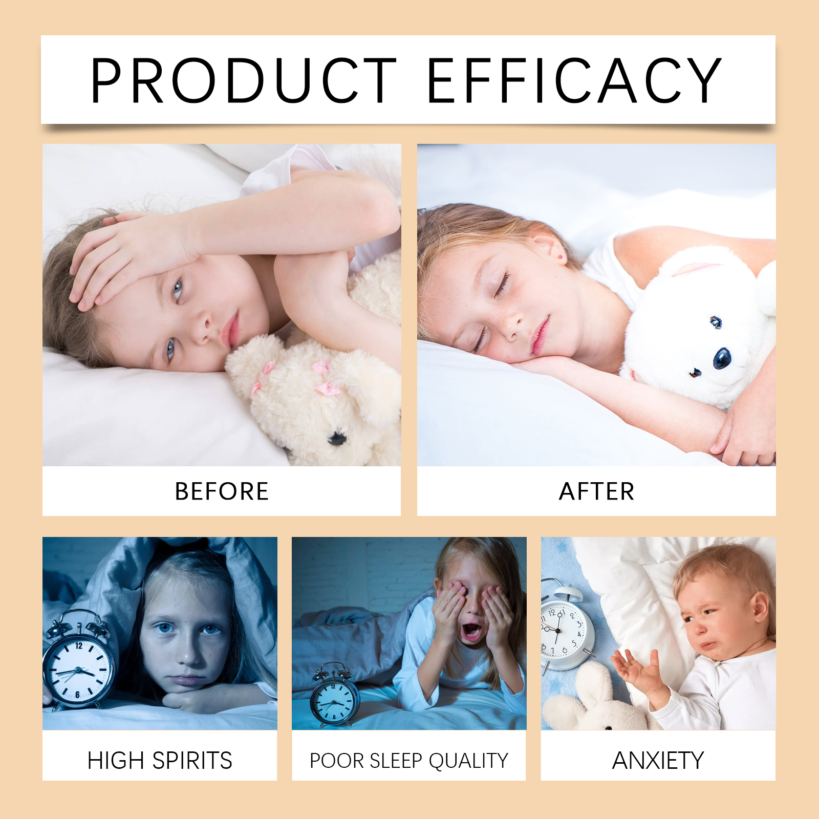 Our children's bedtime lotion contains coconut oil, lavender extract, magnesium lactate. It can release a soft aroma, help relax the mood and create a comfortable sleep environment. Take magnesium supplements to help improve sleep quality. Deep nourishes and keeps skin moisturized all night long. Its use is simple: 1. Clean and dry the skin. 2. Apply appropriate amount of this product evenly on thighs, shoulders and other parts of the body. 3. Gently massage until absorbed. Special formula to help children calm down faster and fall asleep naturally. Create a warm environment that calms your child's mind and reduces the number of times you wake up during the night.