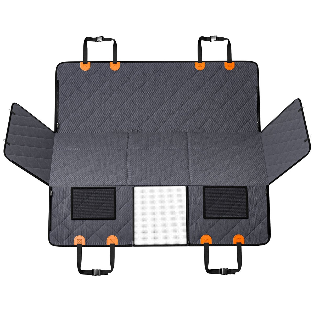 Features & Details Extra-Large Space for Trucks: Struggling with limited backseat space? This Back Seat Extender is specifically designed for trucks, using a heavy-duty board to expand your backseat by 40%, offering a spacious and comfortable area for your dog to enjoy every ride. Sturdy & Reliable Support: The bottom features thickened plywood with a 400lbs weight capacity, ensuring a flat and stable surface. This Dog Car Seat Cover for Back Seat Bed is perfect for large dogs, providing a secure and comfortable travel experience without the risk of collapsing. Premium Multi-Layer Protection: Constructed with 7 layers, including waterproof and scratch-resistant fabric, this Dog Car Bed offers durability and protection. The non-slip bottom ensures secure stability, while the tough materials resist wear from your dog’s claws, extending the cover’s lifespan. Simplified Cleaning: Crafted from waterproof, scratch-resistant 600D cationic fabric, this waterproof dog hammock for car is easily removable and washable, making it effortless to keep your truck's backseat clean. Interactive Mesh Window for Comfort: The detachable mesh window, equipped with slider zippers, allows you to easily interact with your dog during the ride, helping to relieve anxiety and keep them calm and comfortable. It also includes a safety belt to ensure secure travel.