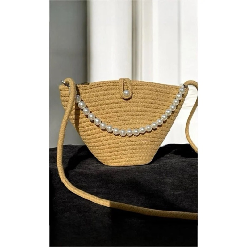 Women Latte Brown Pearl Design Shoulder Bag Elegant Daily Handbag