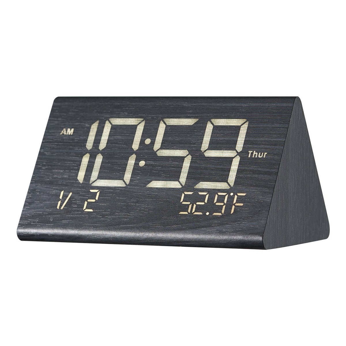Clear & Multi-Function Display: This alarm clock shows everything you need at a glance—time (12/24-hour), date, day of the week, indoor temperature (°F/°C), and daylight saving time settings. The screen has 5 brightness levels, so you get a clear, easy-to-read display, whether it's day or night.